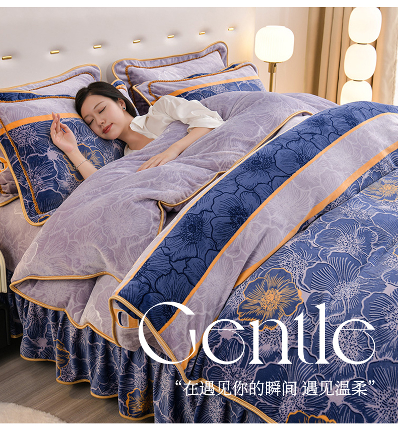 商品名称:赫本 2025新品8斤爆品牛奶绒四件套床裙款金雕绒法莱绒四套件 漫丽