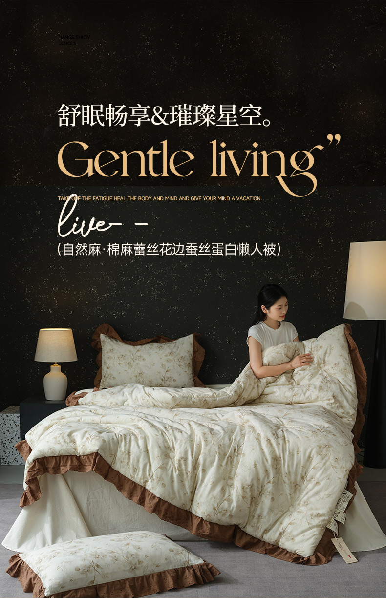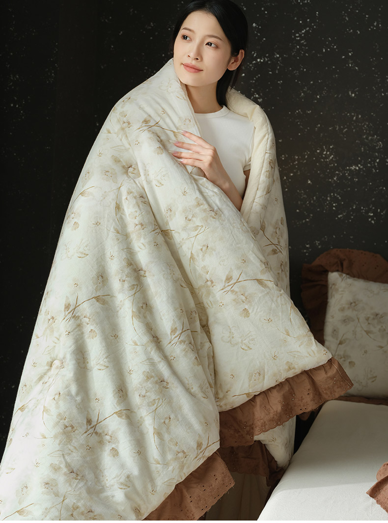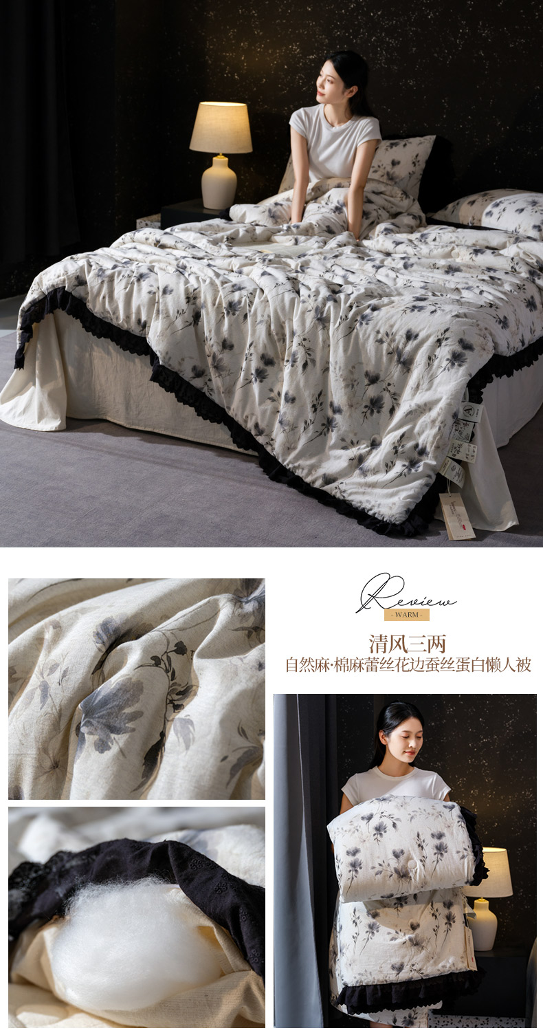 (总)桂雅居 2025新款舒适麻棉麻数码印花蕾丝花边懒人被被子被芯,时雨灰,栗壳色,烟墨灰,麻本色,素锦咖,映雪咖,组合