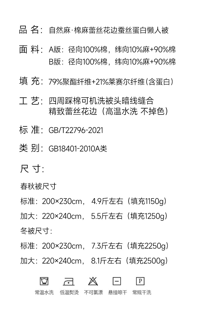 商品名称:(总)桂雅居 2025新款自然麻棉麻印花懒人被被子被芯