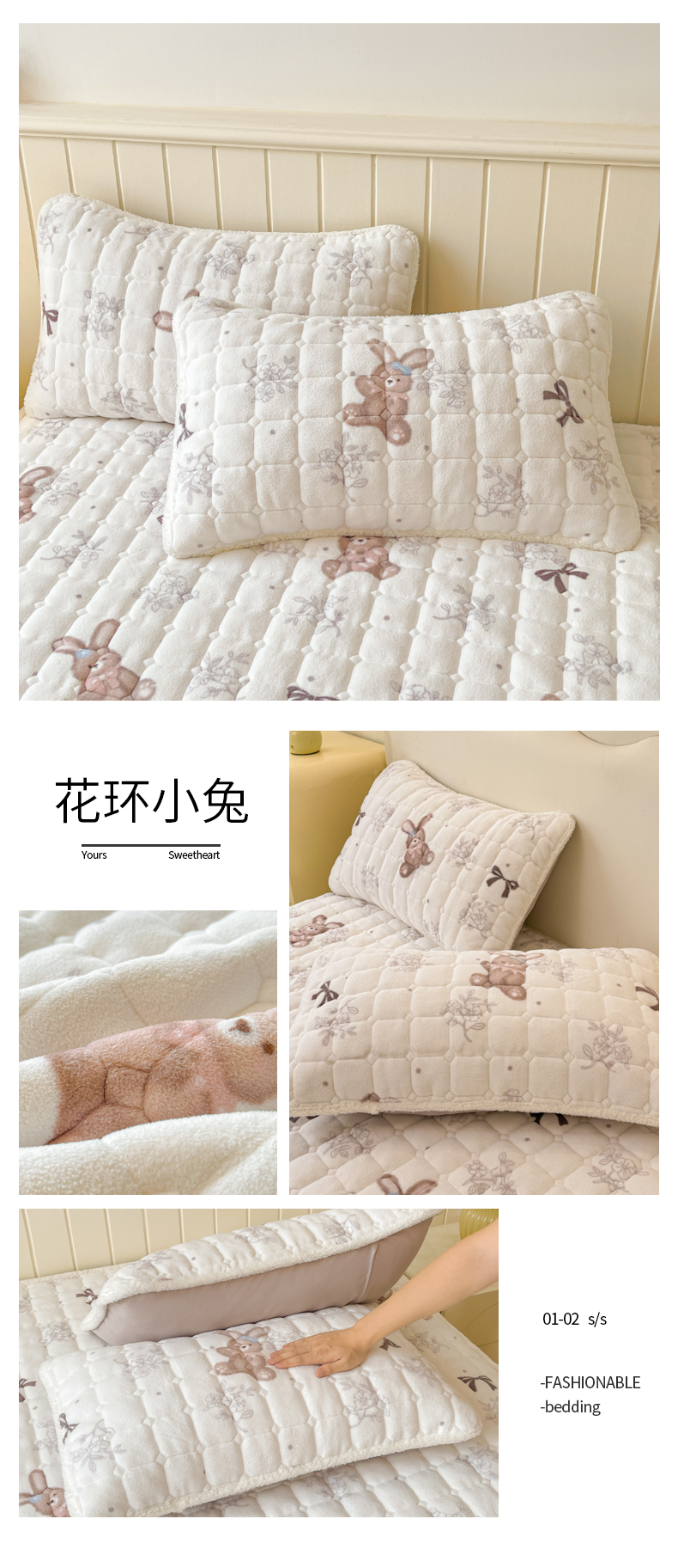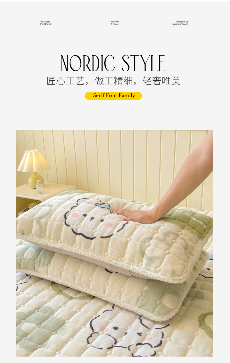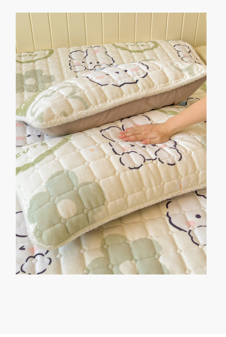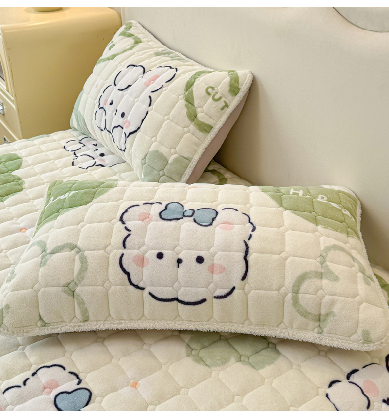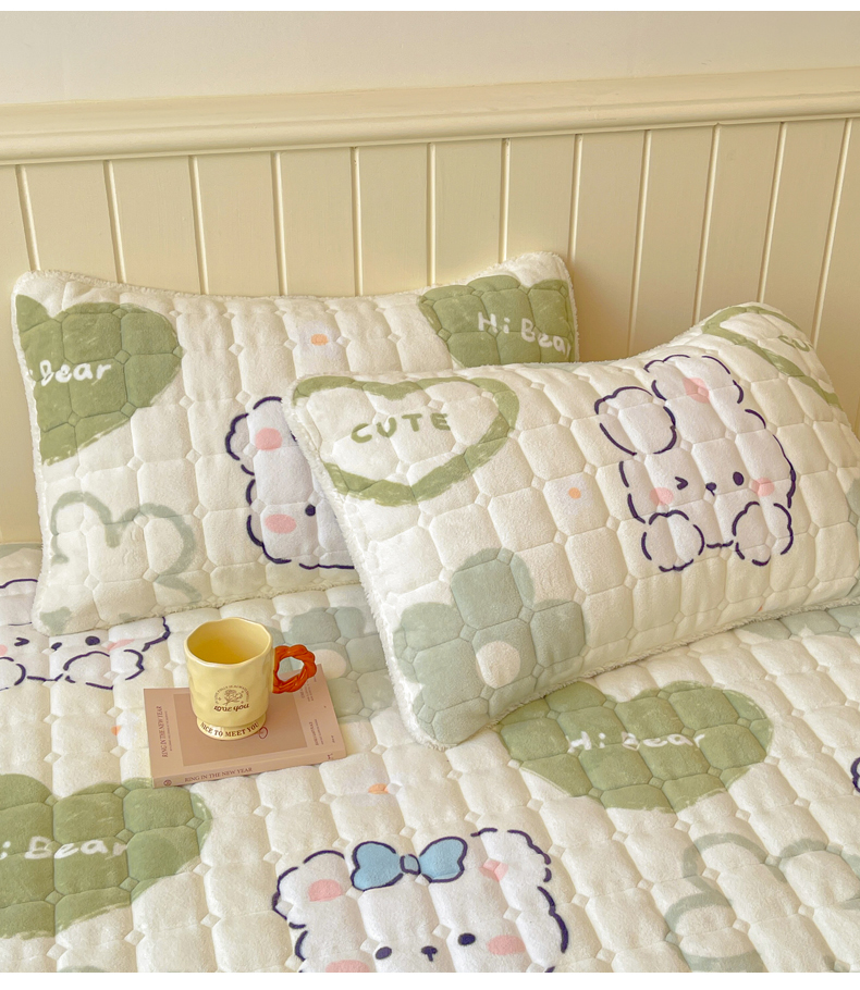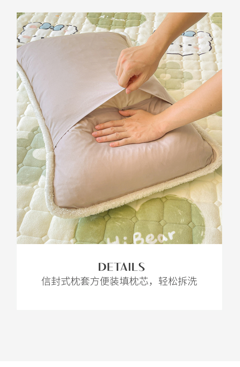 商品名称:LIFE.丽芙 2025秋冬新款A类牛奶绒加厚保暖夹棉枕套-包边款 爱心小宠-绿