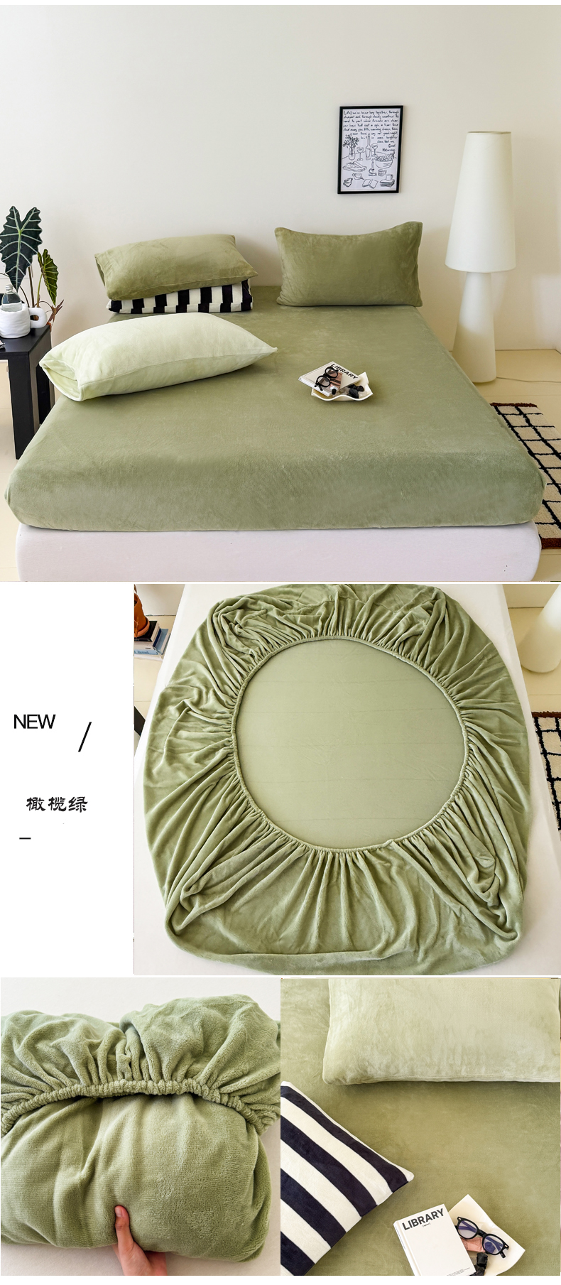 • 91家纺网 家纺一手货源 找家纺 三朵家纺 2025新款牛奶绒印花单床笠 床笠单件 橄榄绿