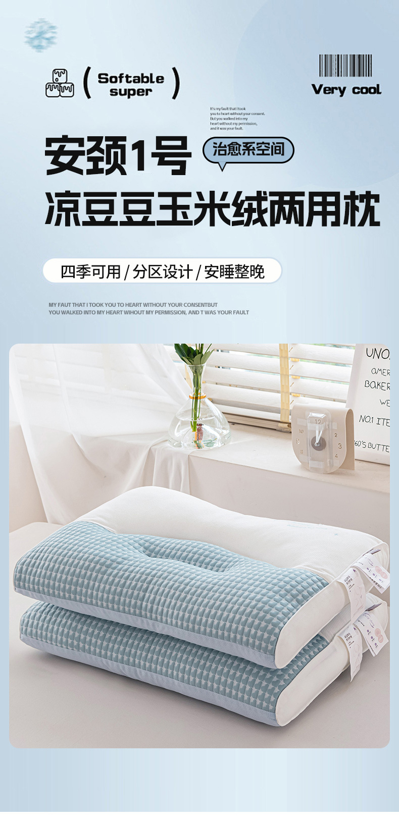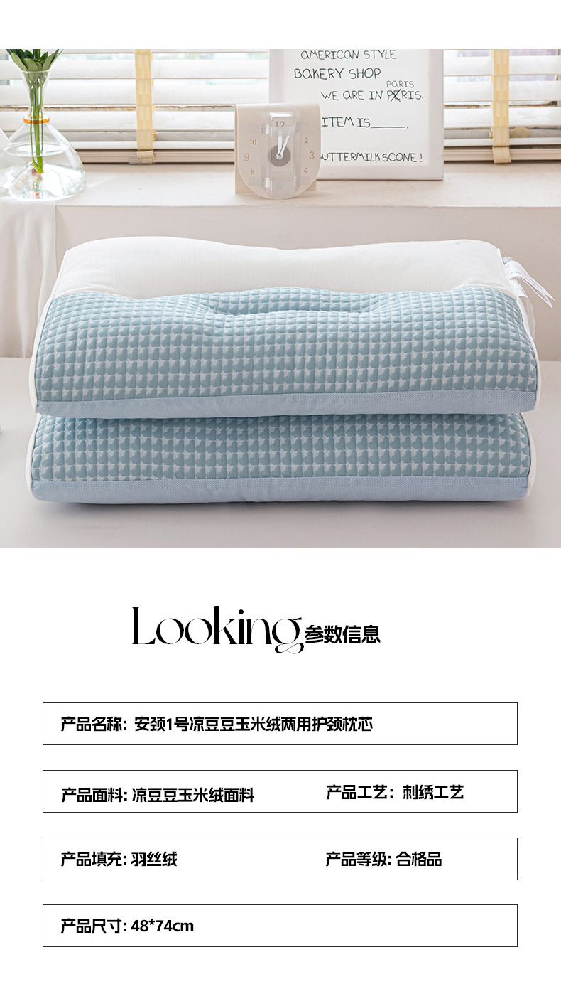 商品名称:(总)锦鲤枕芯 2025新款A类无荧光安颈1号凉豆豆玉米绒两用护颈枕芯