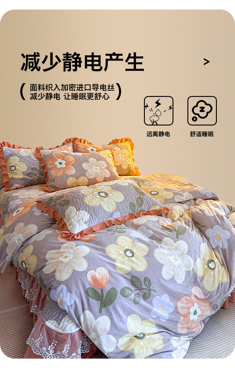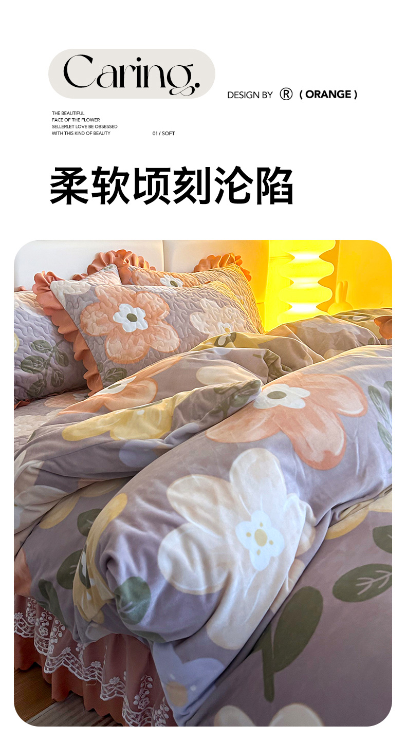 当前位置: 91家纺网 > 商品网购 > 床品套件 > 四件套 > 牛奶绒四件套 > 梦柏家纺 2025新款牛奶绒夹棉床盖四件套 花语