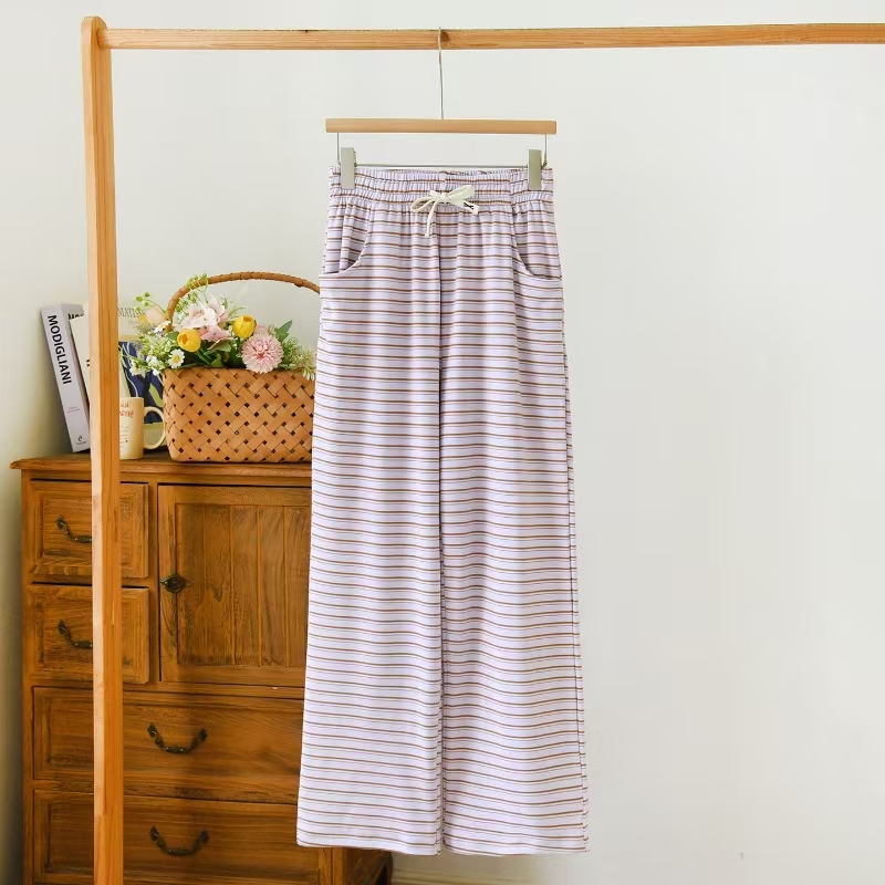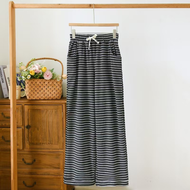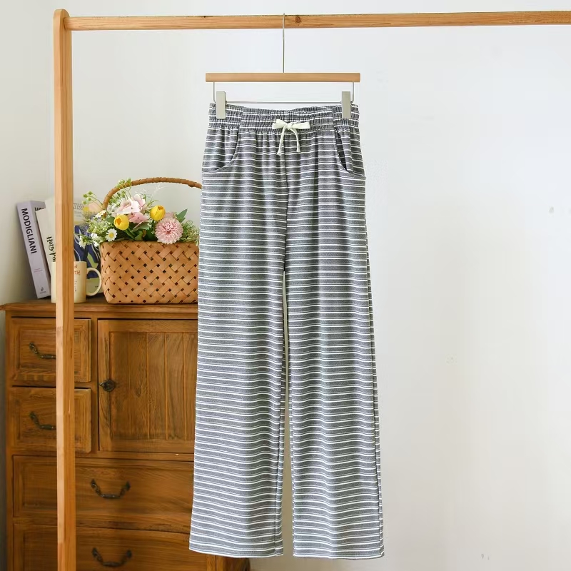 (总)双梦毛巾 2025新款田园个情侣色织长裤,褐色,驼色