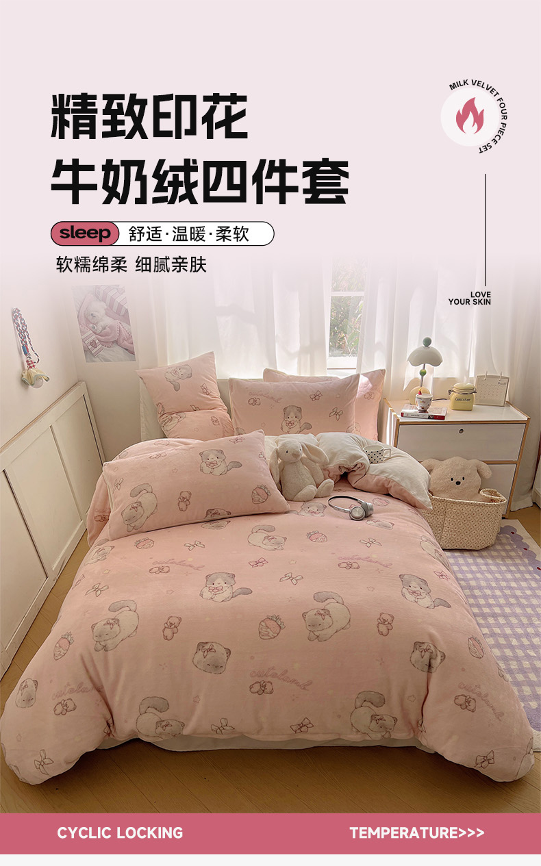 当前位置: 91家纺网 > 商品网购 > 床品套件 > 四件套 > 牛奶绒四件套 > 红嘴企鹅 2025新款精致印花牛奶绒四件套 牛奶绒-羞羞猫