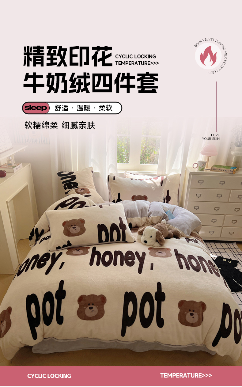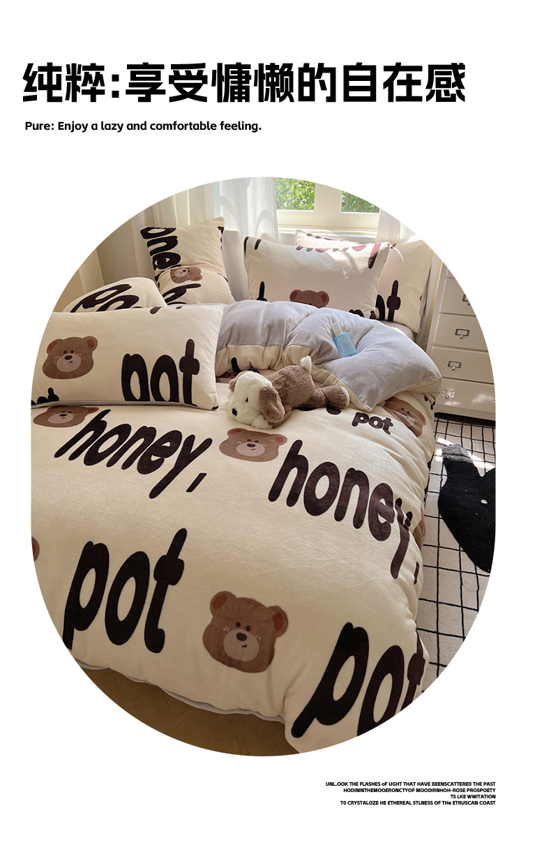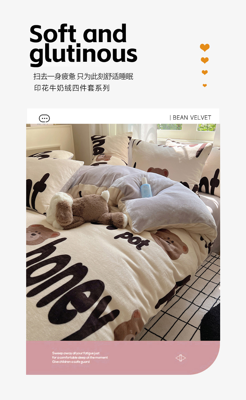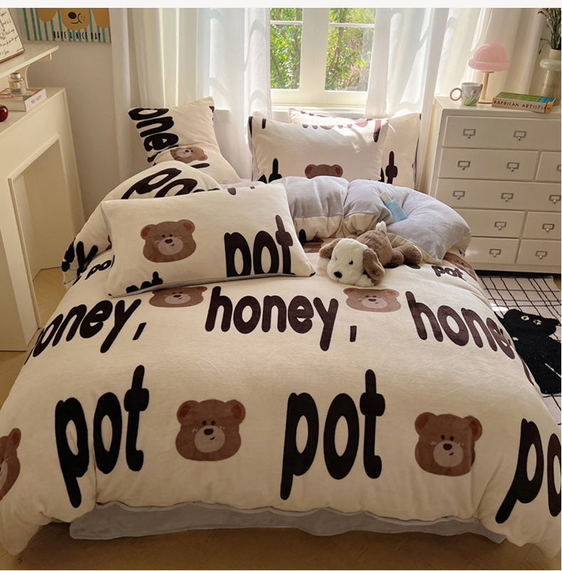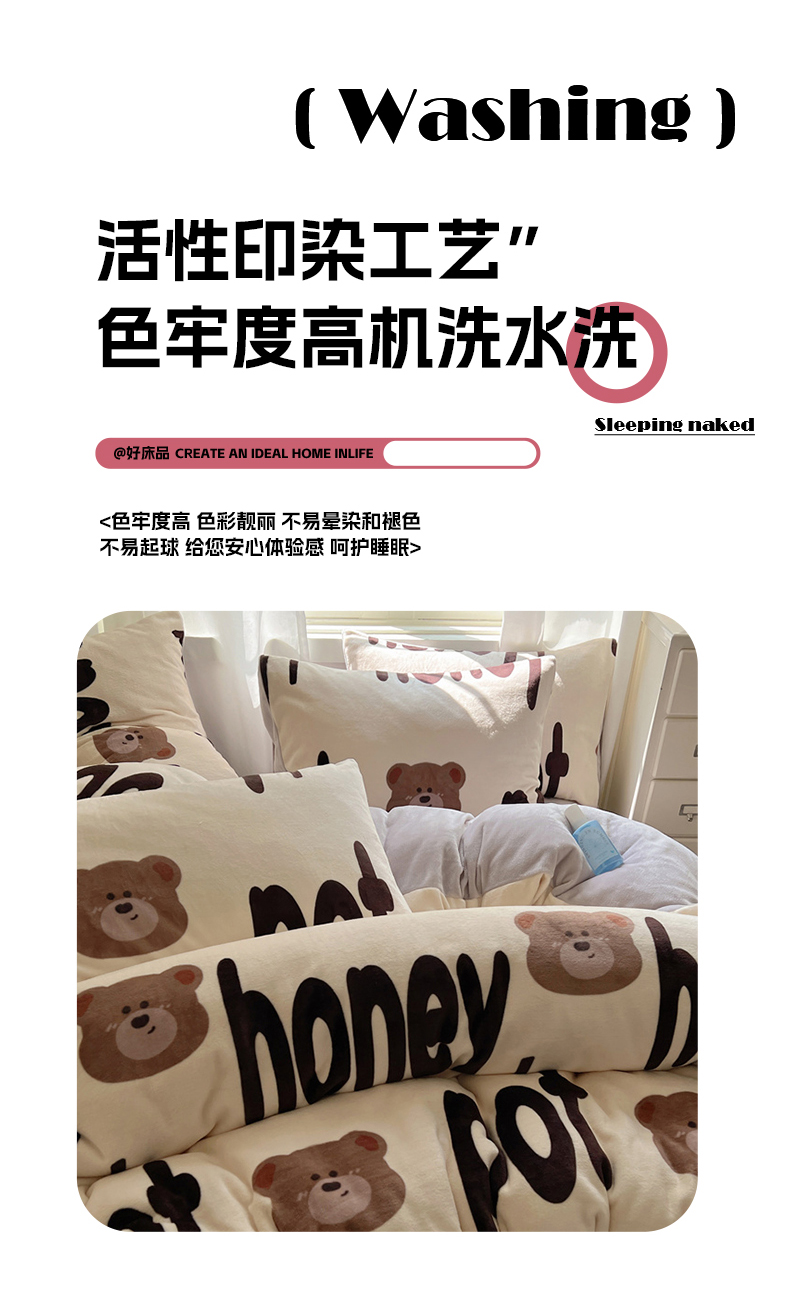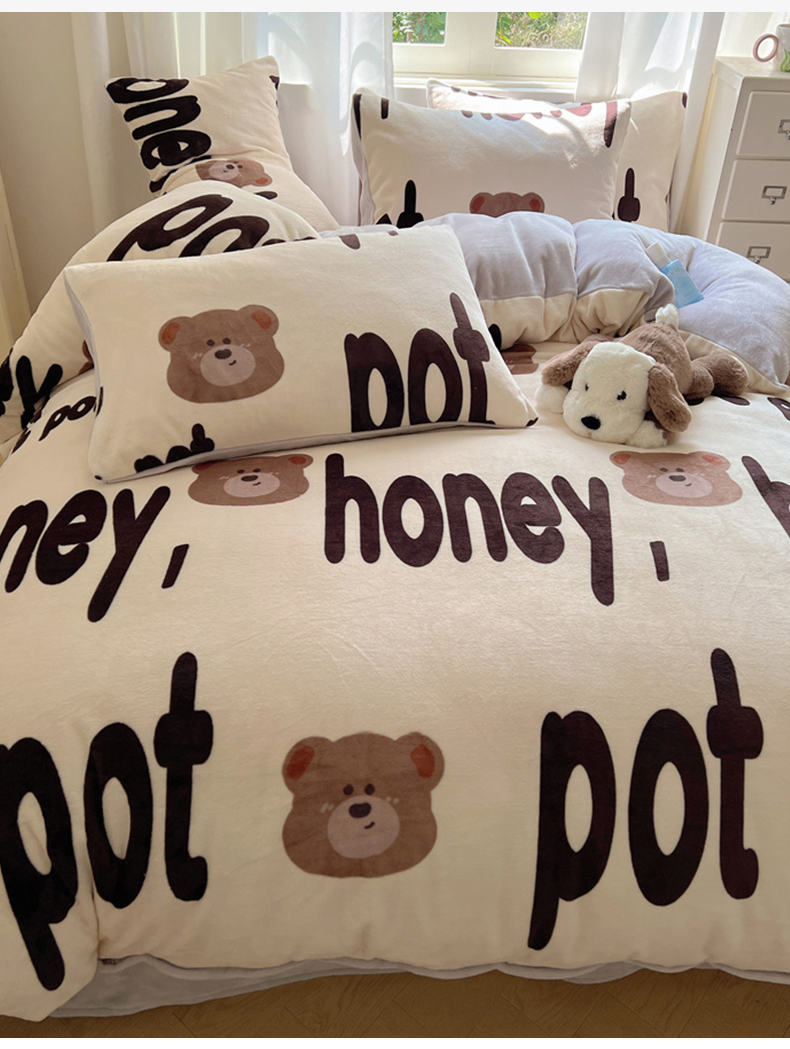 当前位置: 91家纺网 > 商品网购 > 床品套件 > 四件套 > 牛奶绒四件套 > 红嘴企鹅 2025新款精致印花牛奶绒四件套 字母熊