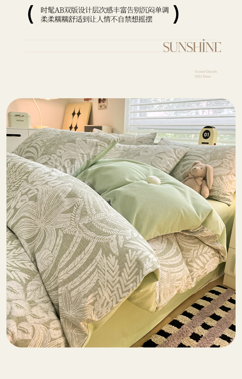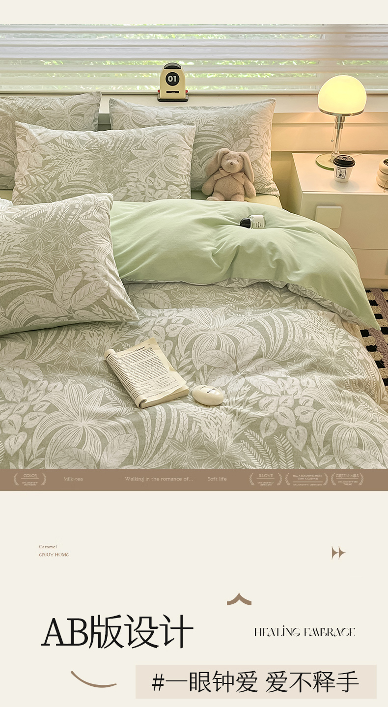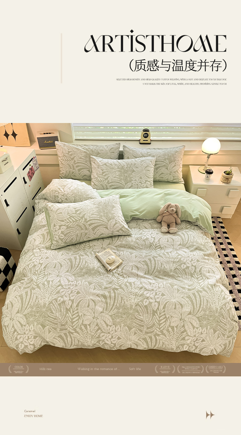 (总)瑞莱 2026新款A类全棉纯棉有氧双层纱四件套,白熊小姐,彩色木马,淡彩花笺,费尔岛小熊,焦糖奶汪-桔,焦糖奶汪-绿,萌星,苹果星星人,小樱桃,樱桃画报