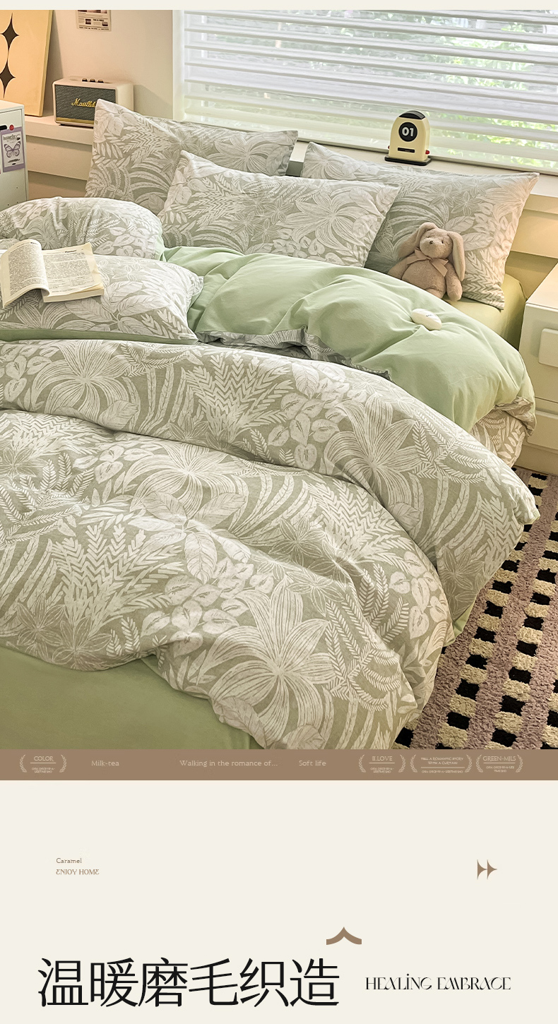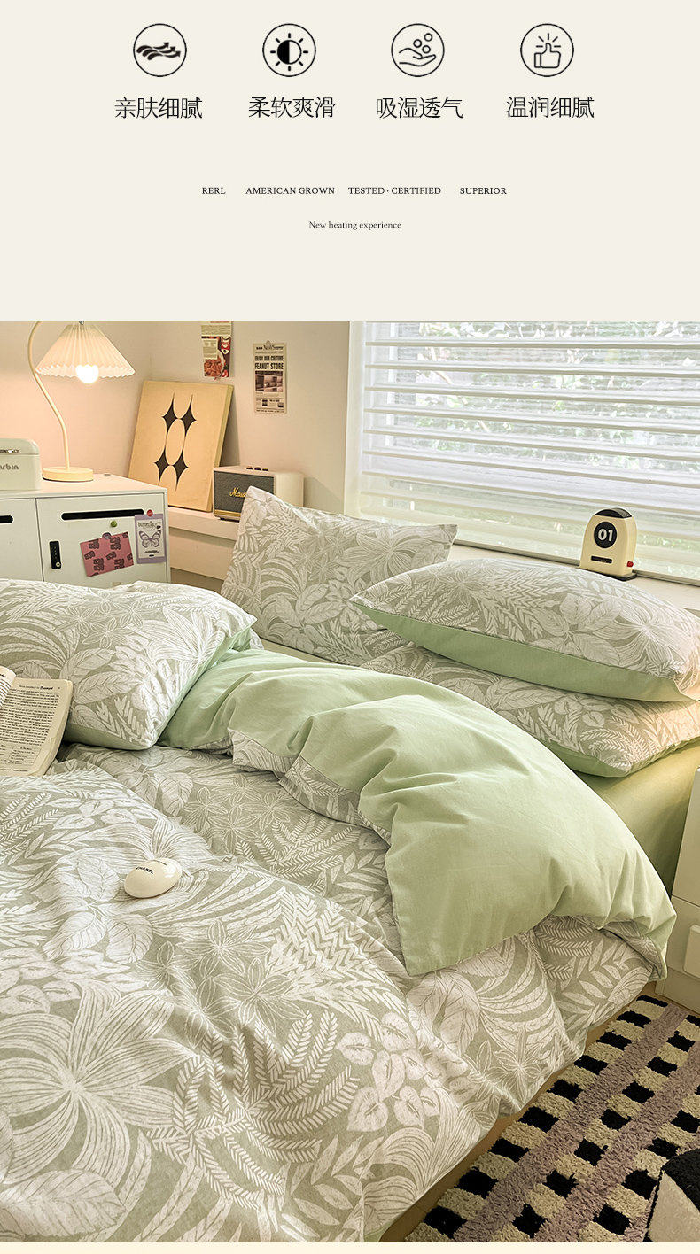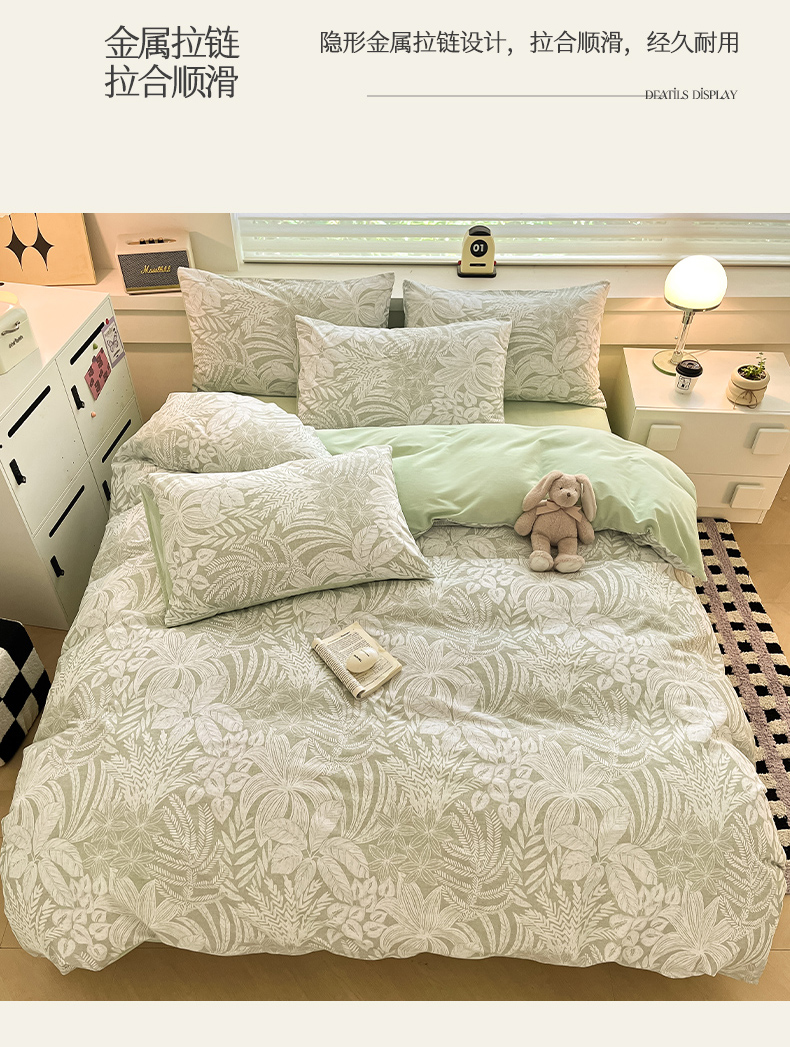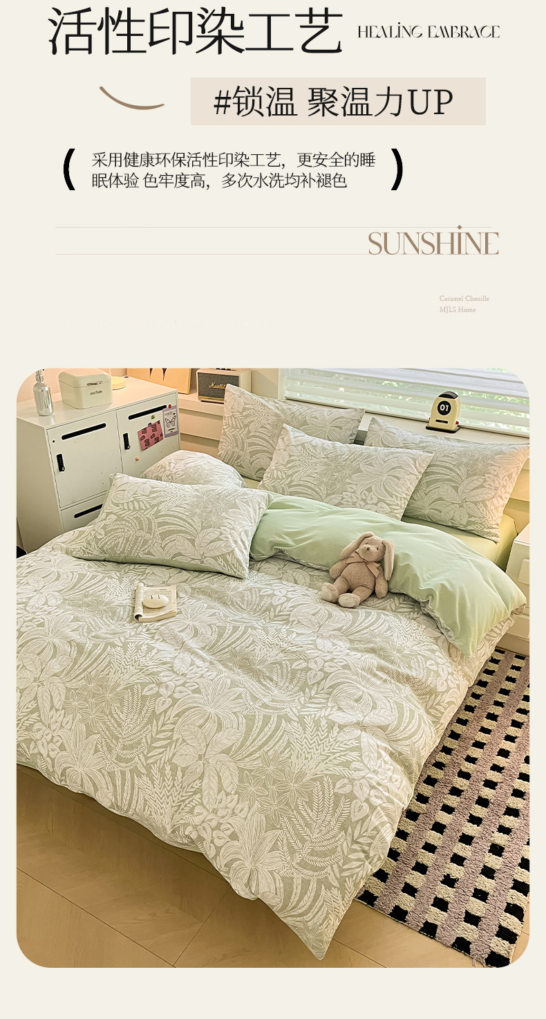 瑞莱 2025新款纯棉磨毛印花四件套 热带雨林