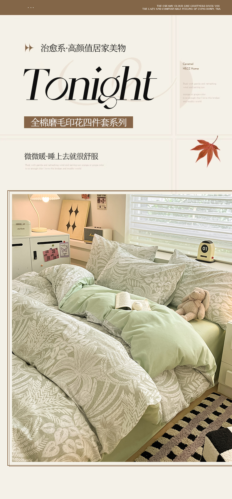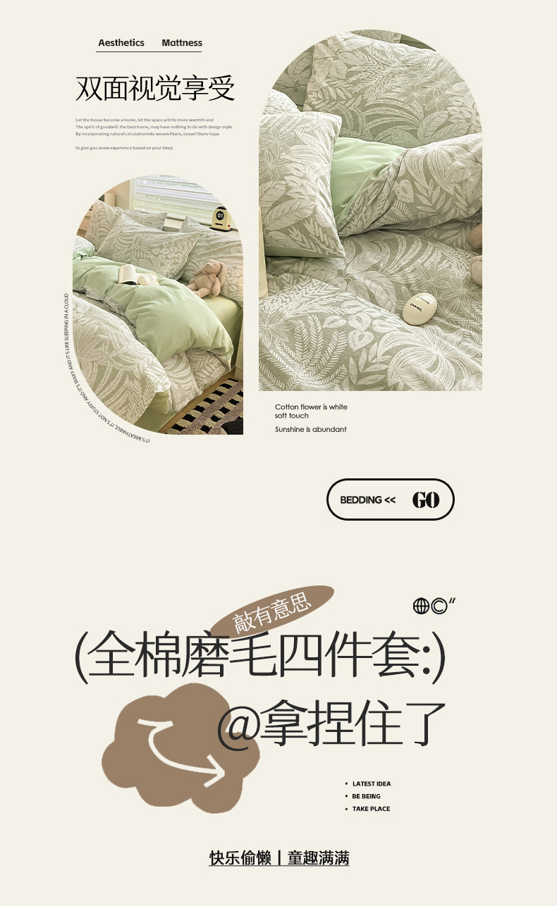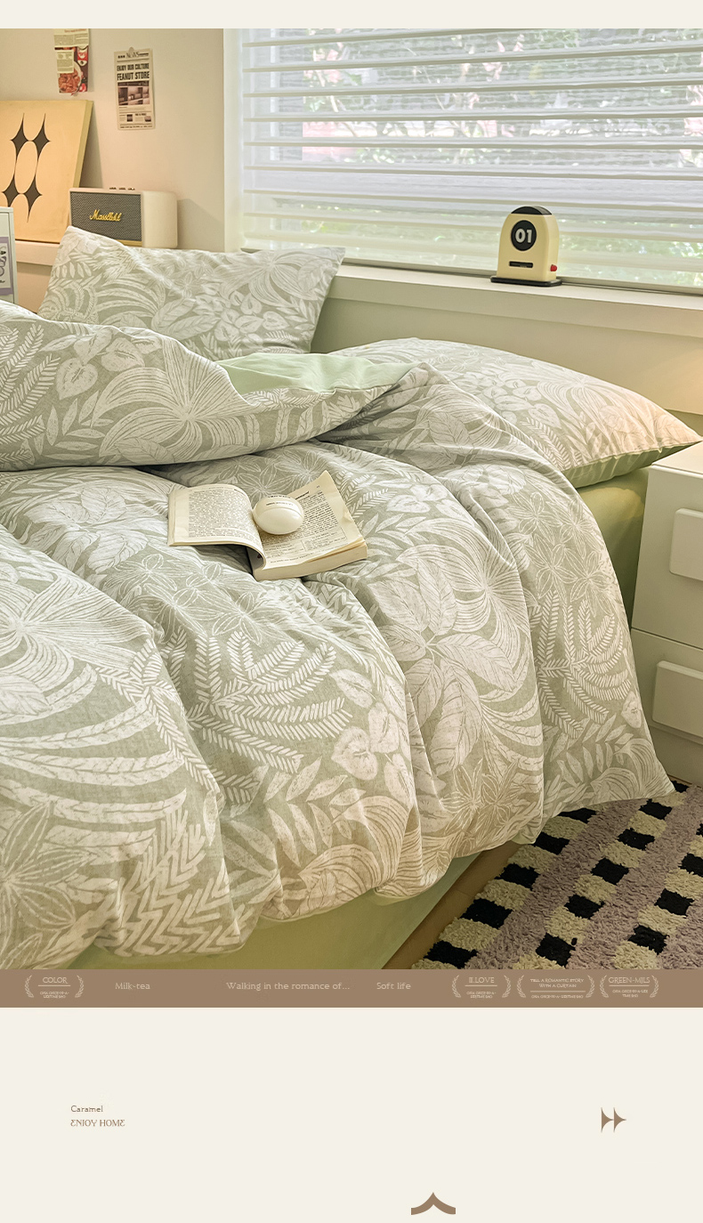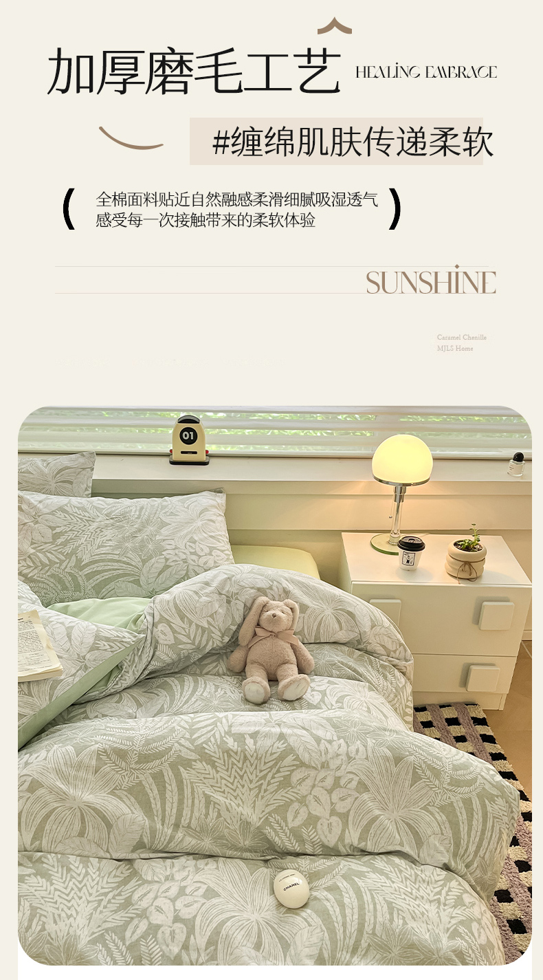 瑞莱 2025新款纯棉磨毛印花四件套 热带雨林