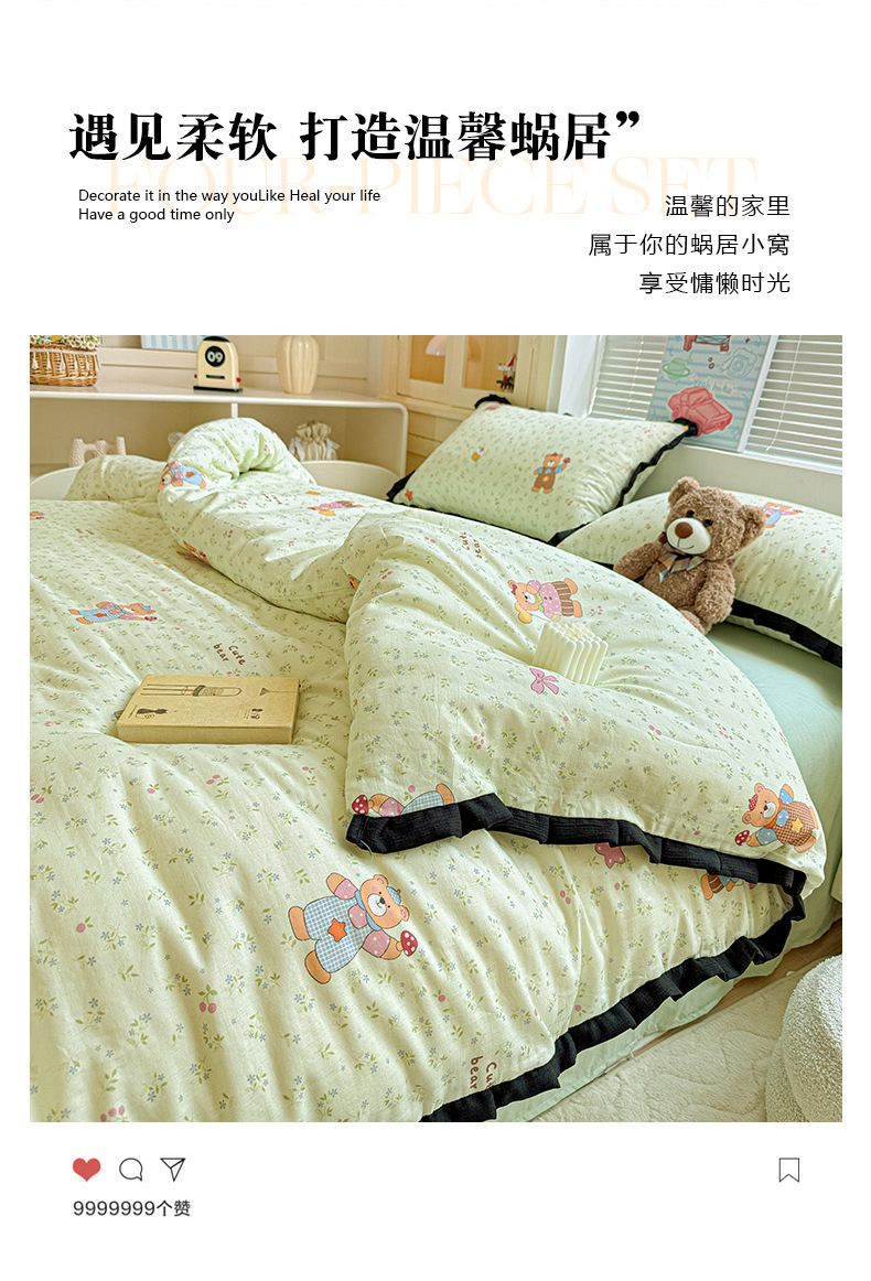 (总)喜颜 2025新款云感提花皱皱棉爆款花边四件套-赫本风,繁花,蝴蝶黑,花丛小熊,花束,棉棉兔,陌上花开,炫彩蝴蝶