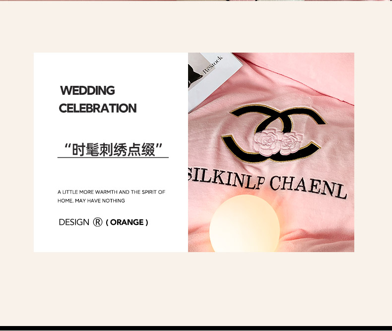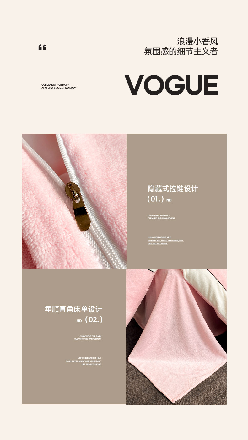 商品名称:绒世界 2025秋冬小香风香奈系列牛奶绒四件套 樱花粉