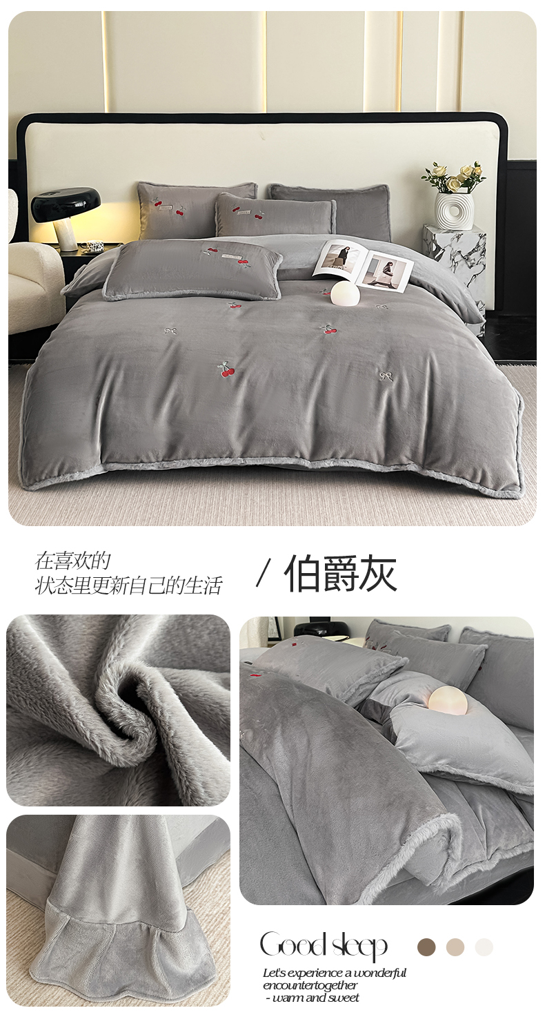 (总)乐坊 2025新款全消光雕花绒牛奶绒刺绣四件套-甜梦,甜梦-橙色,甜梦-豆绿,甜梦-豆沙,甜梦-灰色,甜梦-蓝色,甜梦-奶白,甜梦-玉色,甜梦-紫色