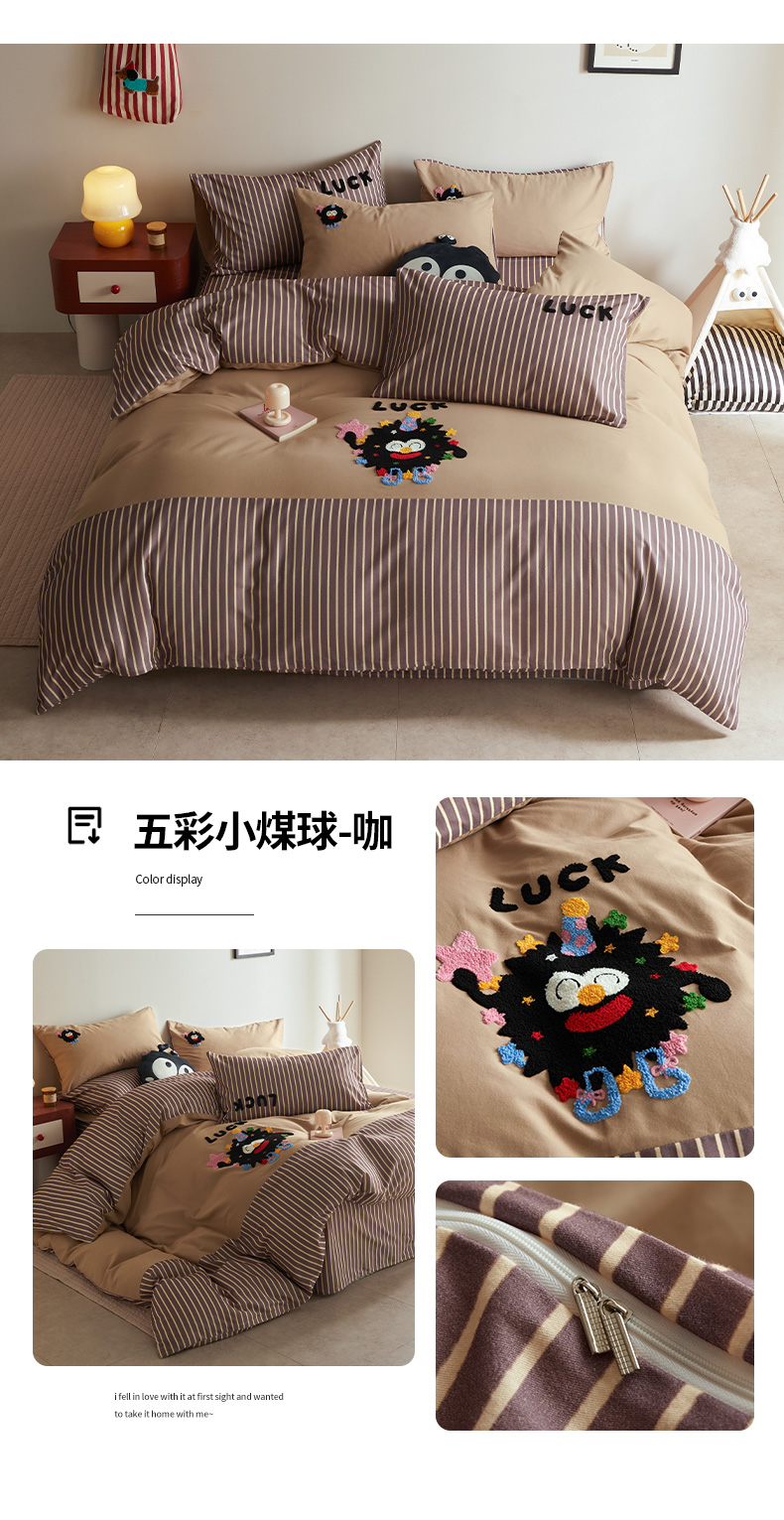当前位置: 91家纺网 > 商品网购 > 床品套件 > 四件套 > 全棉普通四件套 > 怡家居 2025新款全棉纯棉磨毛绣花四件套-拼接款 五彩小煤球-咖