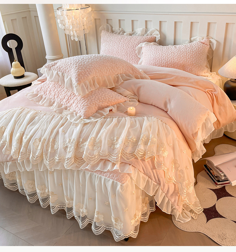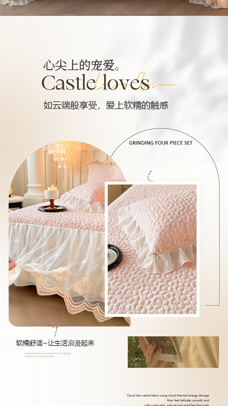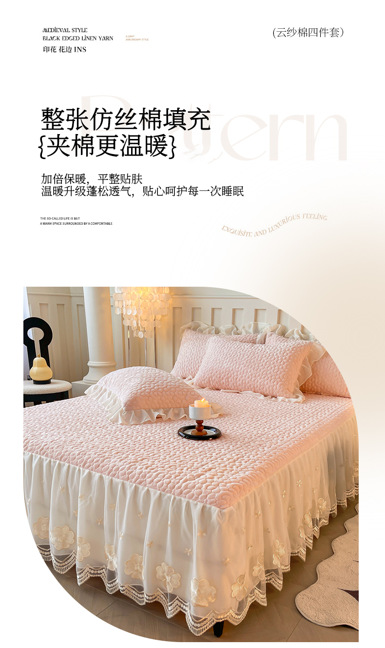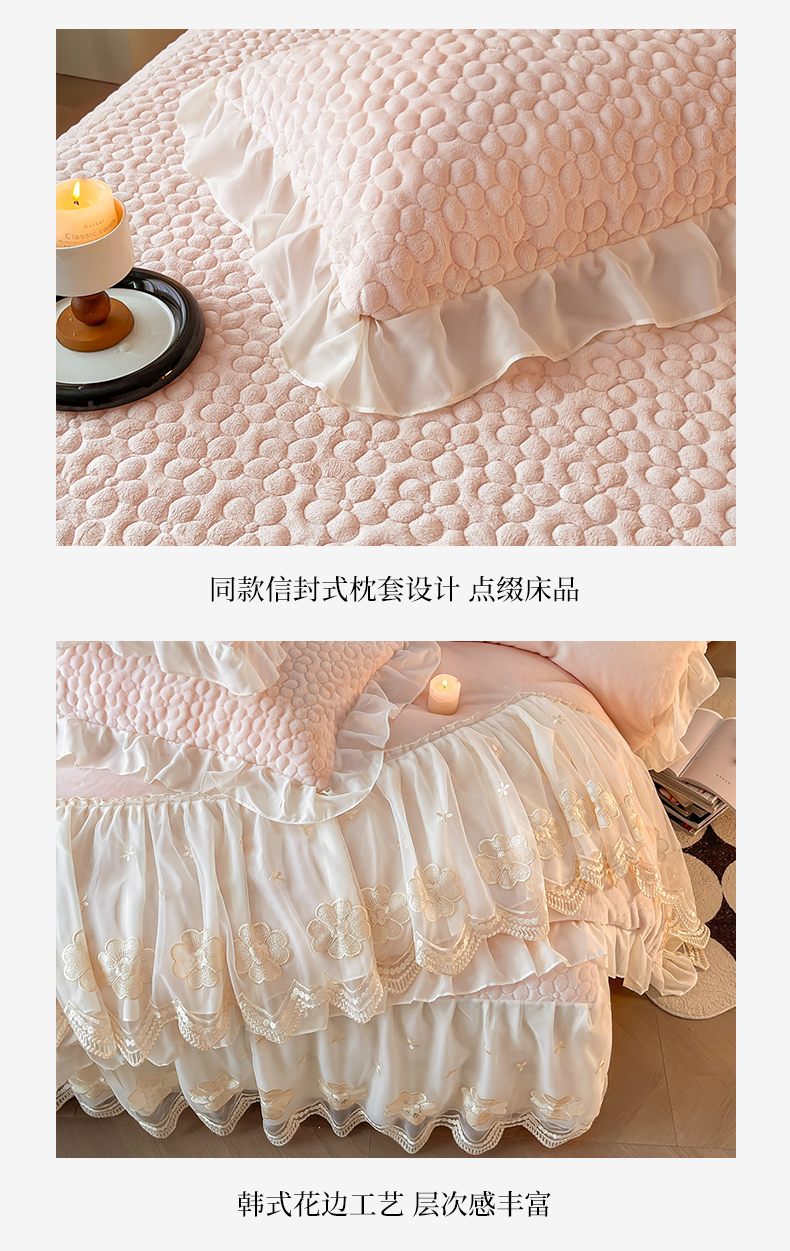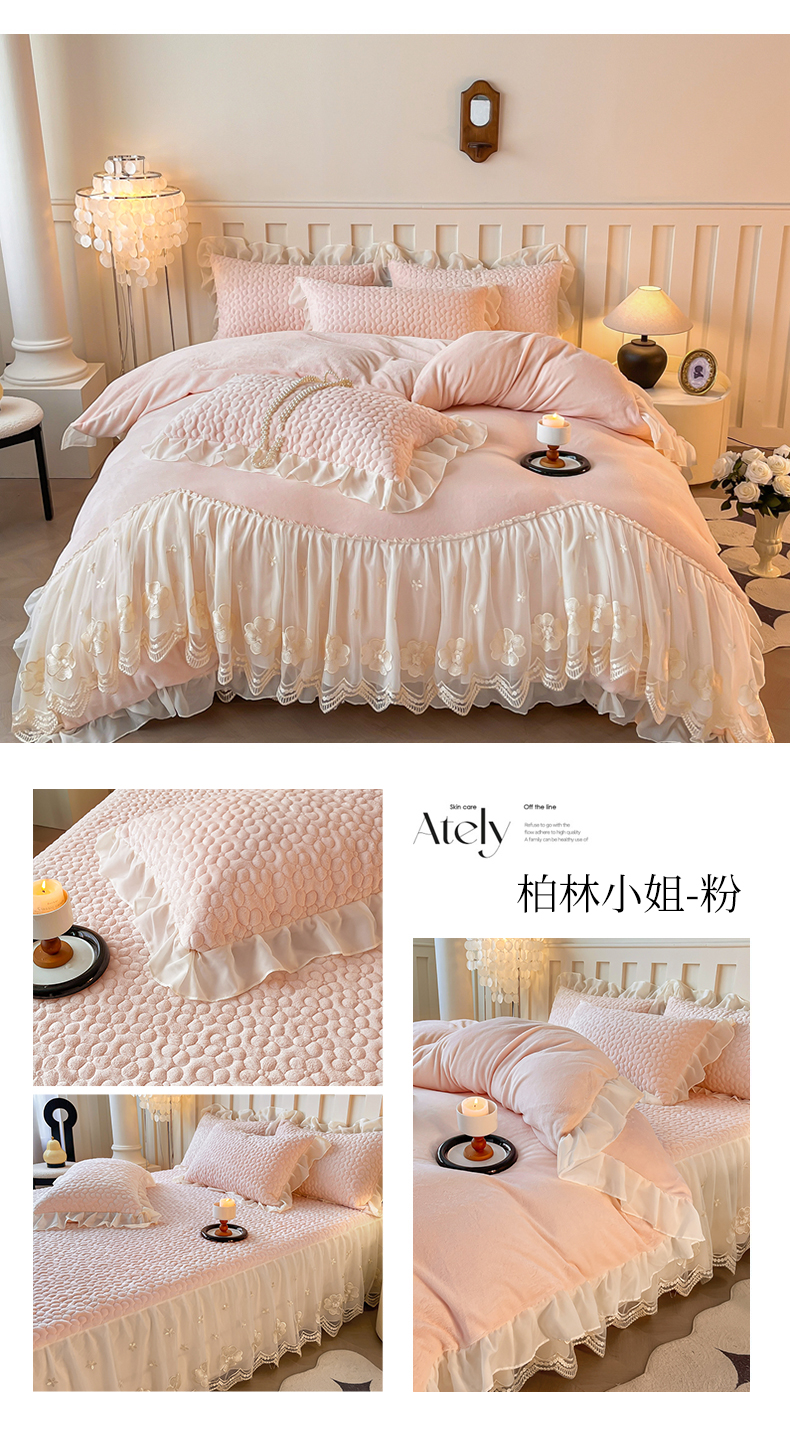 当前位置: 91家纺网 > 商品网购 > 床品套件 > 四件套 > 牛奶绒四件套 > 花香四季家纺 2025新款牛奶绒夹棉床裙款四件套-柏林小姐 柏林小姐-粉