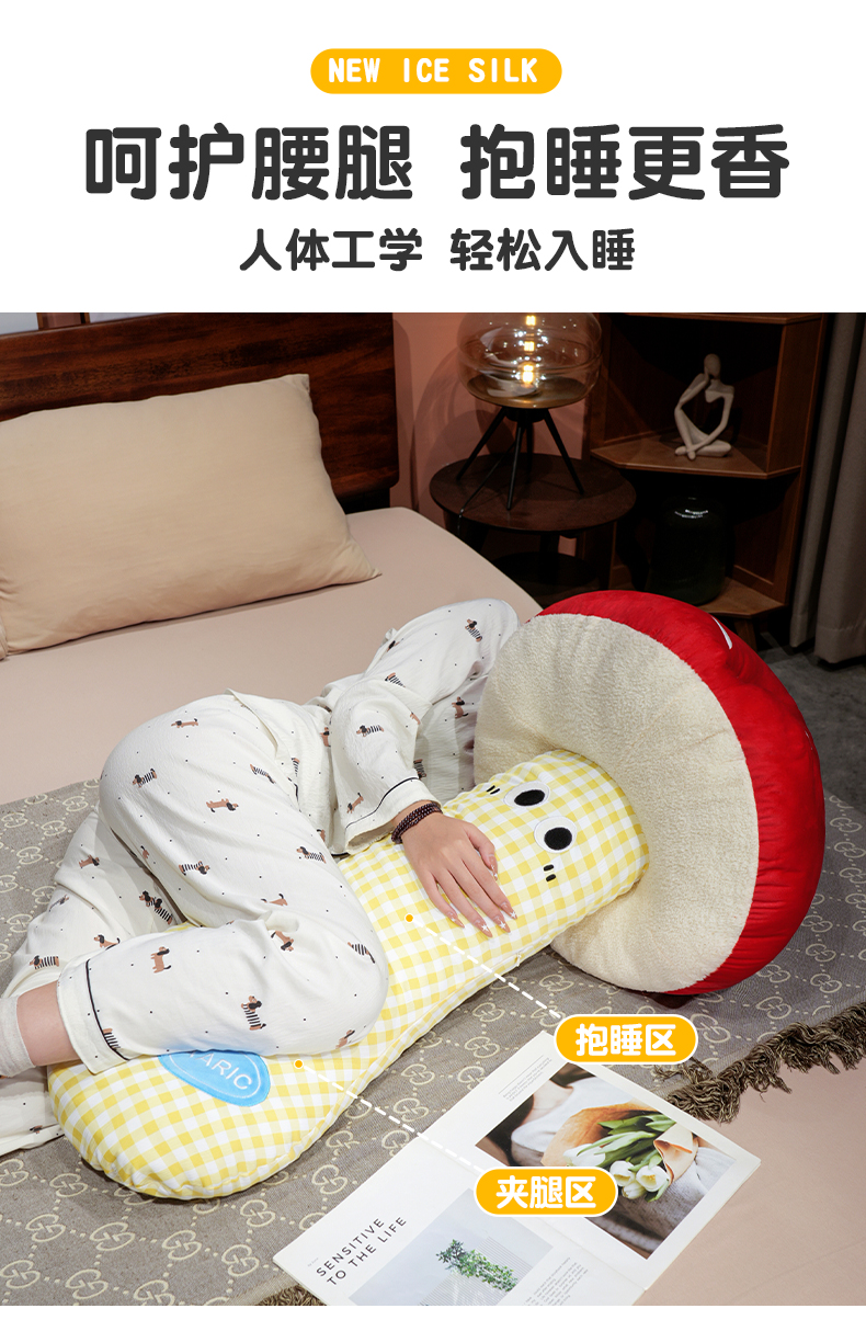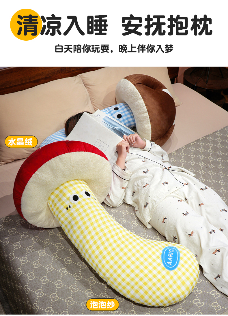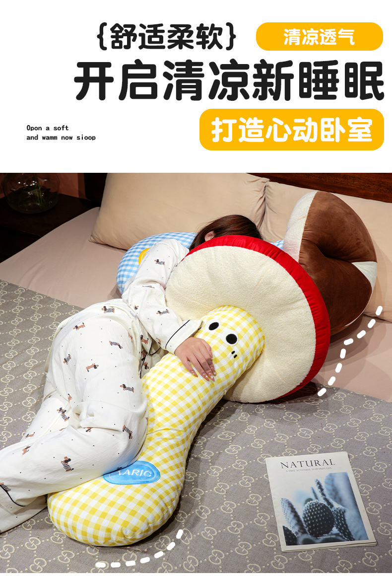 商品名称:(总)仟亿莱 2025新款ins大眼蘑菇格子长条抱枕
