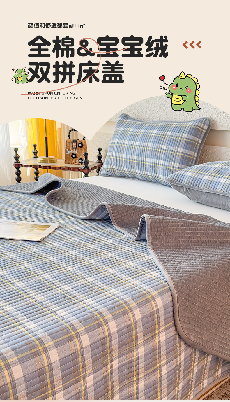 (总)恒爱家纺 2025新款全棉宝宝绒双拼床盖三件套,贝肯熊,春兰,呆萌恐龙,繁星点点,海棠兔,好朋友,花容月貌-蓝,花容月貌-绿,欢乐熊,灰小格,火树琪花,娇媚,精彩人生,拉布布,蓝灰大格,蓝灰中格,蓝香芥,蓝雪花,美少女,萌宠卫士,莫尼-蓝,莫尼-玉,汽车拼图,情人草,韶华,香远益清,熊猫贝贝,萱草花,艳丽动人,紫菀花