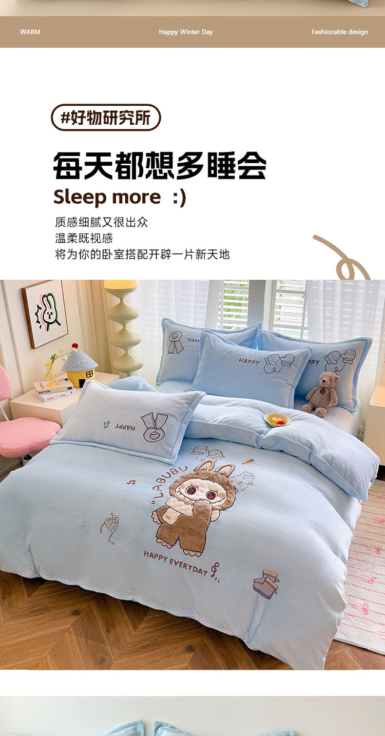 (总)漫布云2025秋冬新品大版卡通230g牛奶绒兔毛贴布绣婴儿绒四件套--布林系列 布林-浅咖