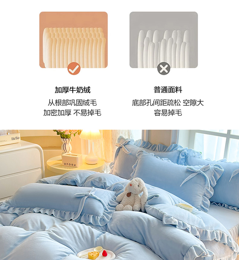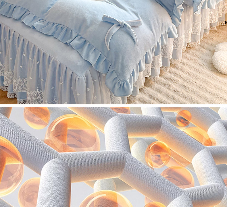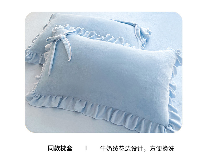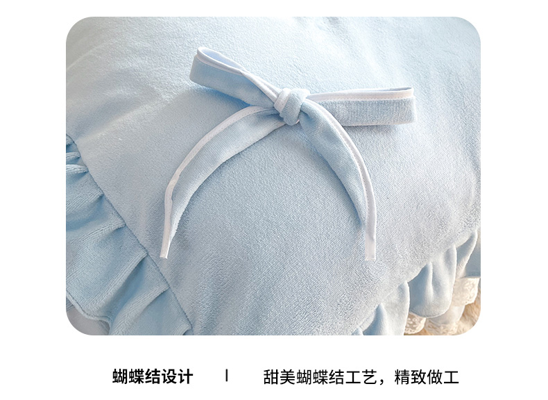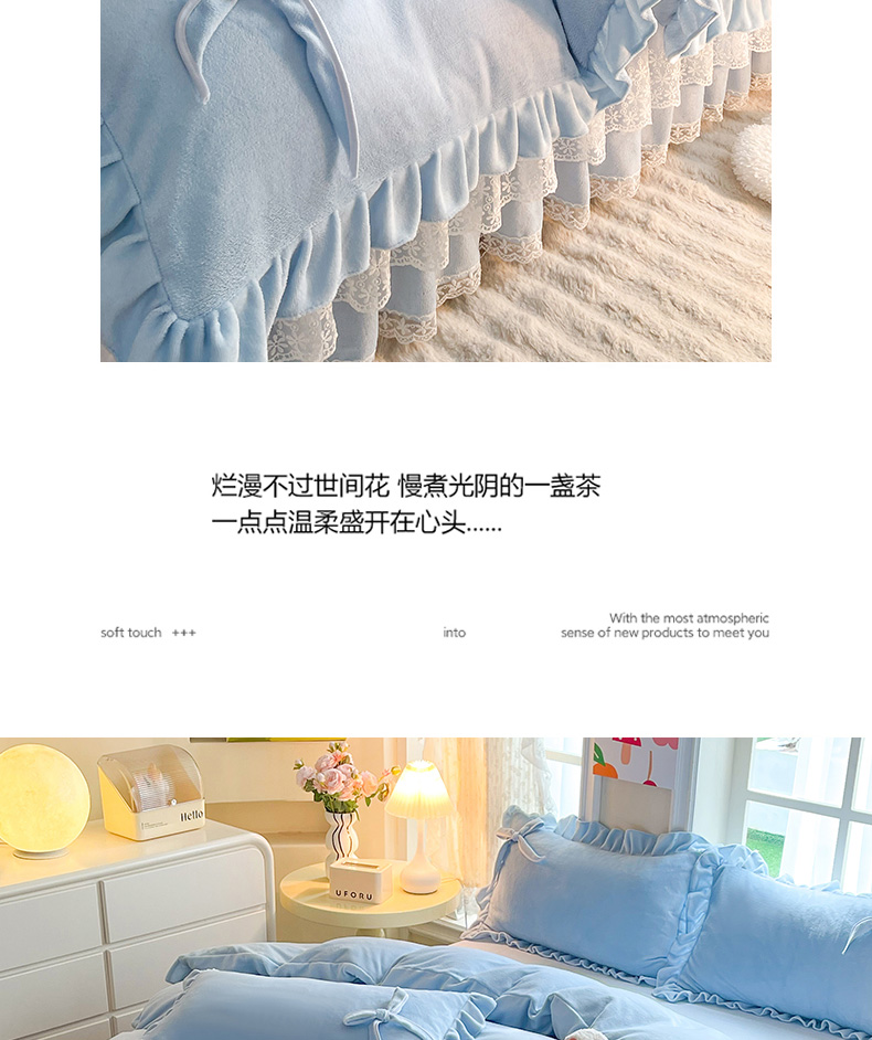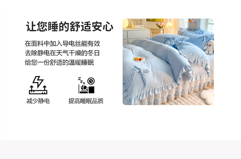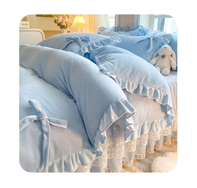 商品名称:后庭寝室 2025新款牛奶绒花边床裙四件套-浪漫花语系列 浪漫花语-天空蓝