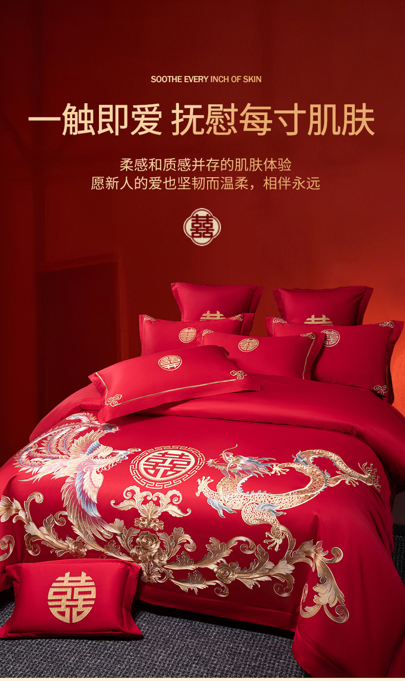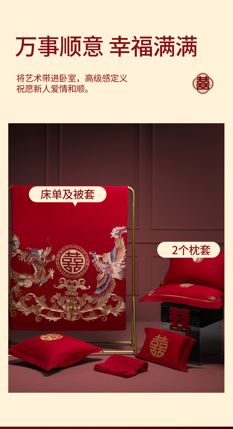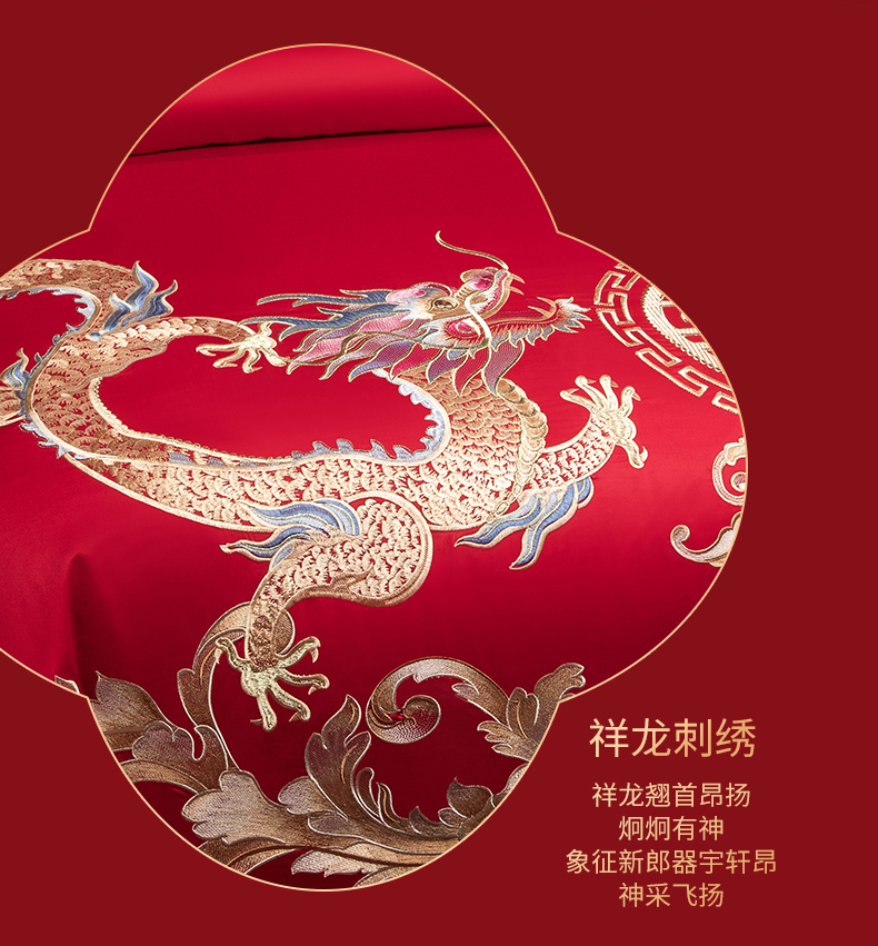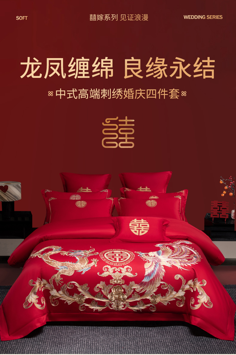 (总)欧乐蒂 2025冬季新品亲肤棉提花刺绣婚庆四件套,龙凤双喜,喜事花开
