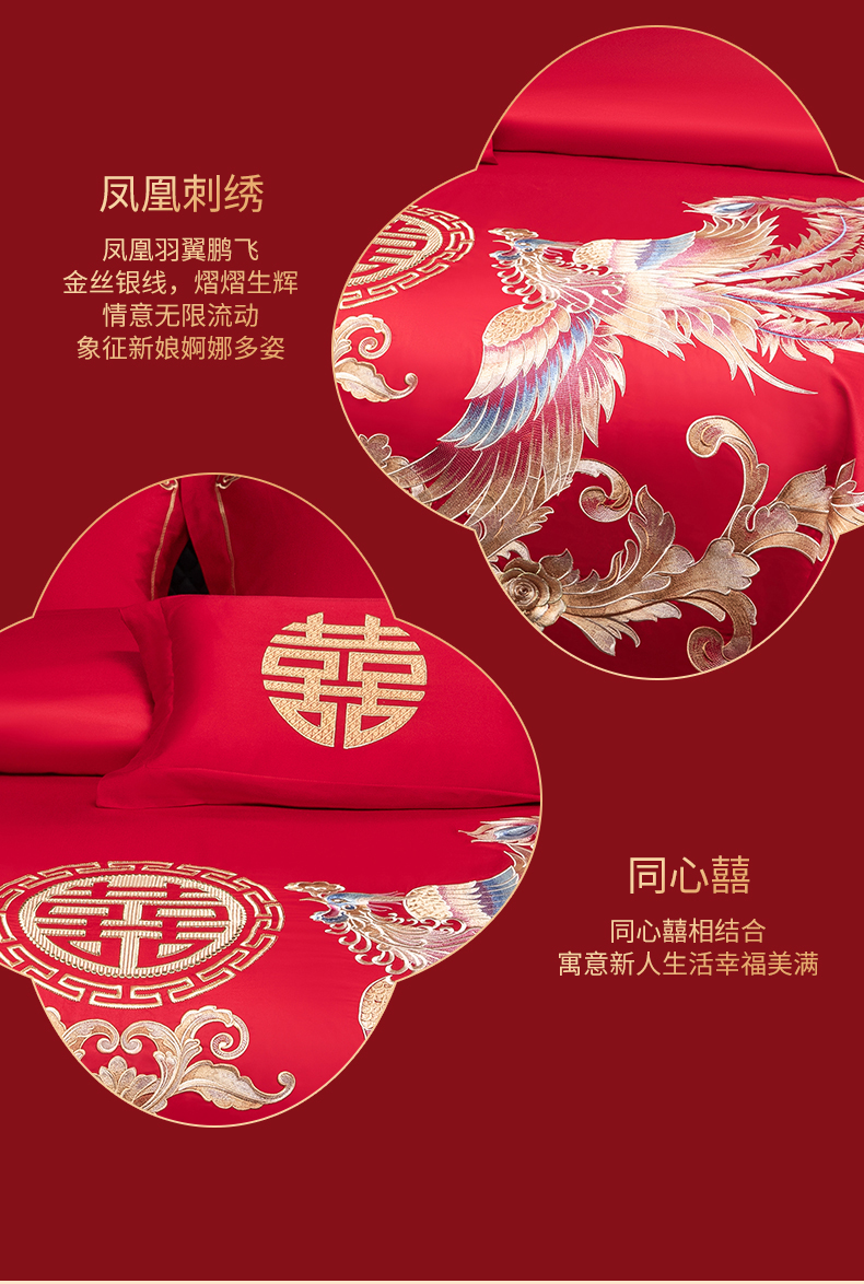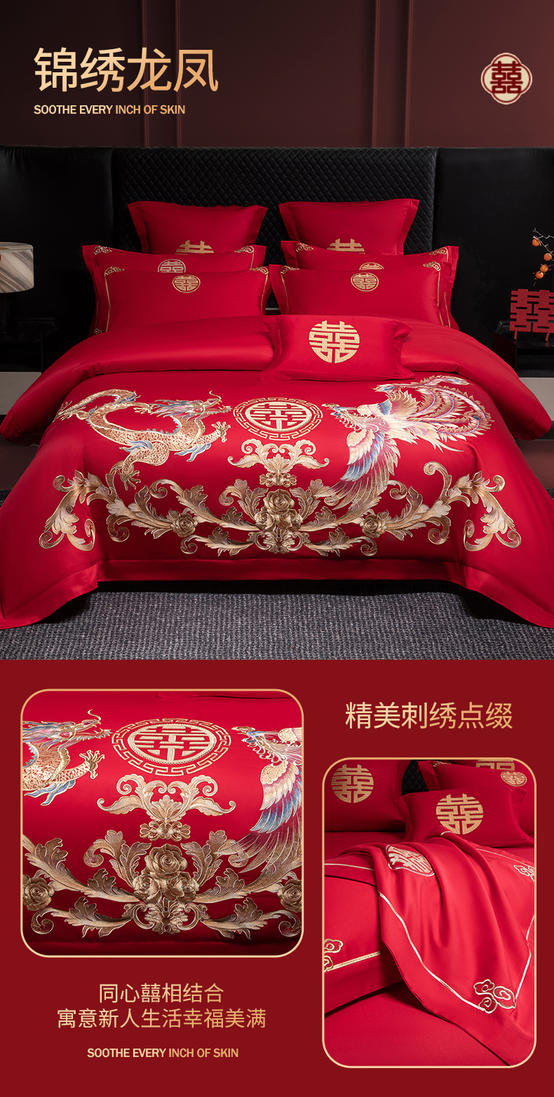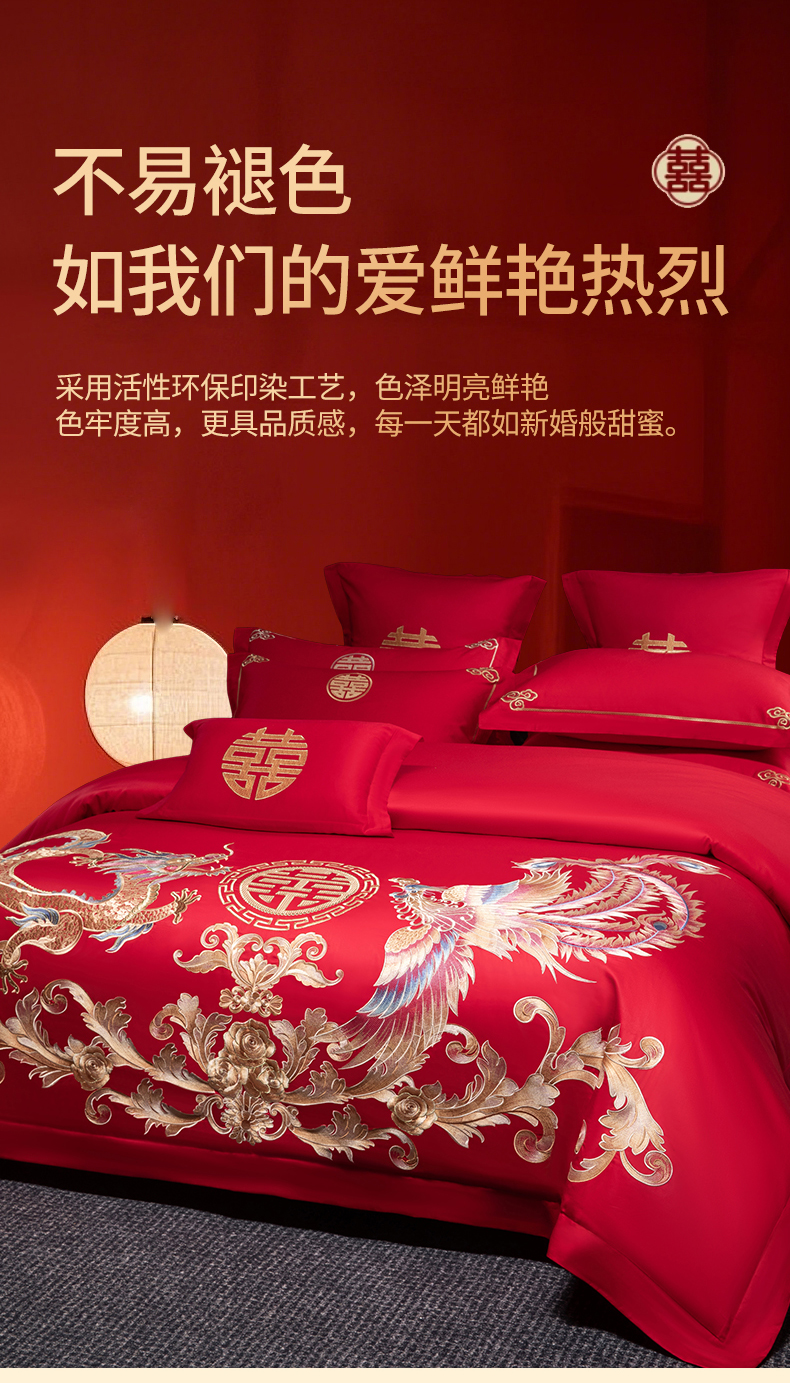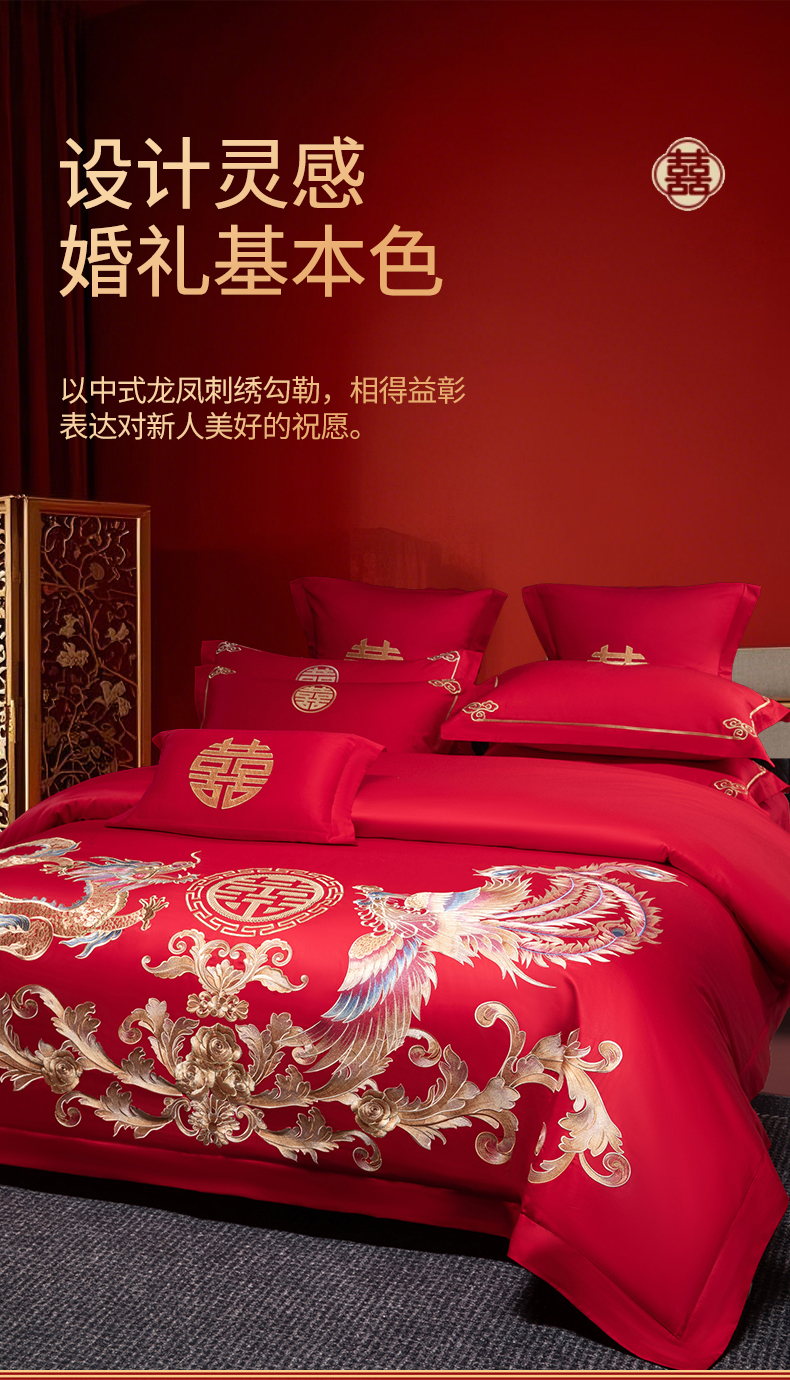 (总)欧乐蒂 2025冬季新品亲肤棉提花刺绣婚庆四件套,龙凤双喜,喜事花开