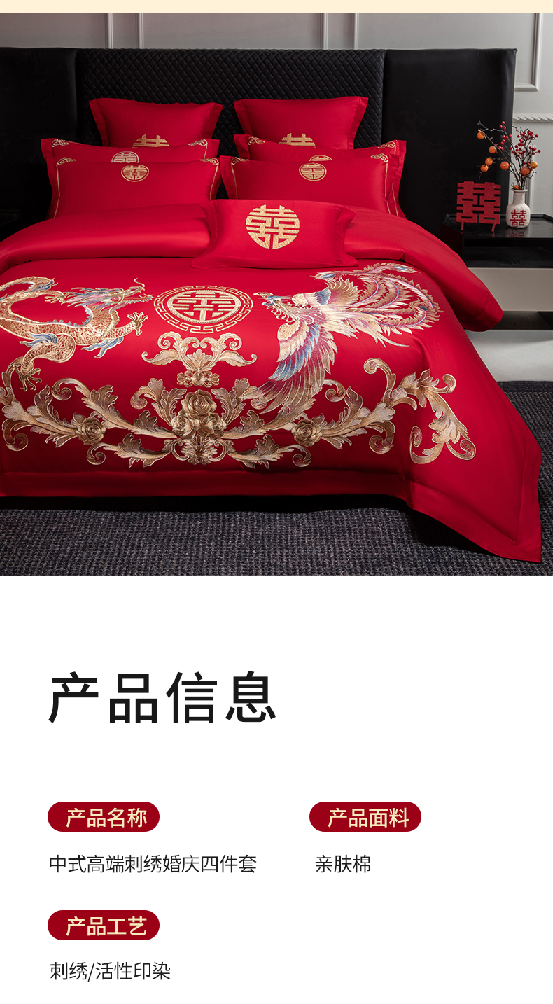 商品名称:欧乐蒂 2025新款中式高端刺绣婚庆四件套 锦绣龙凤