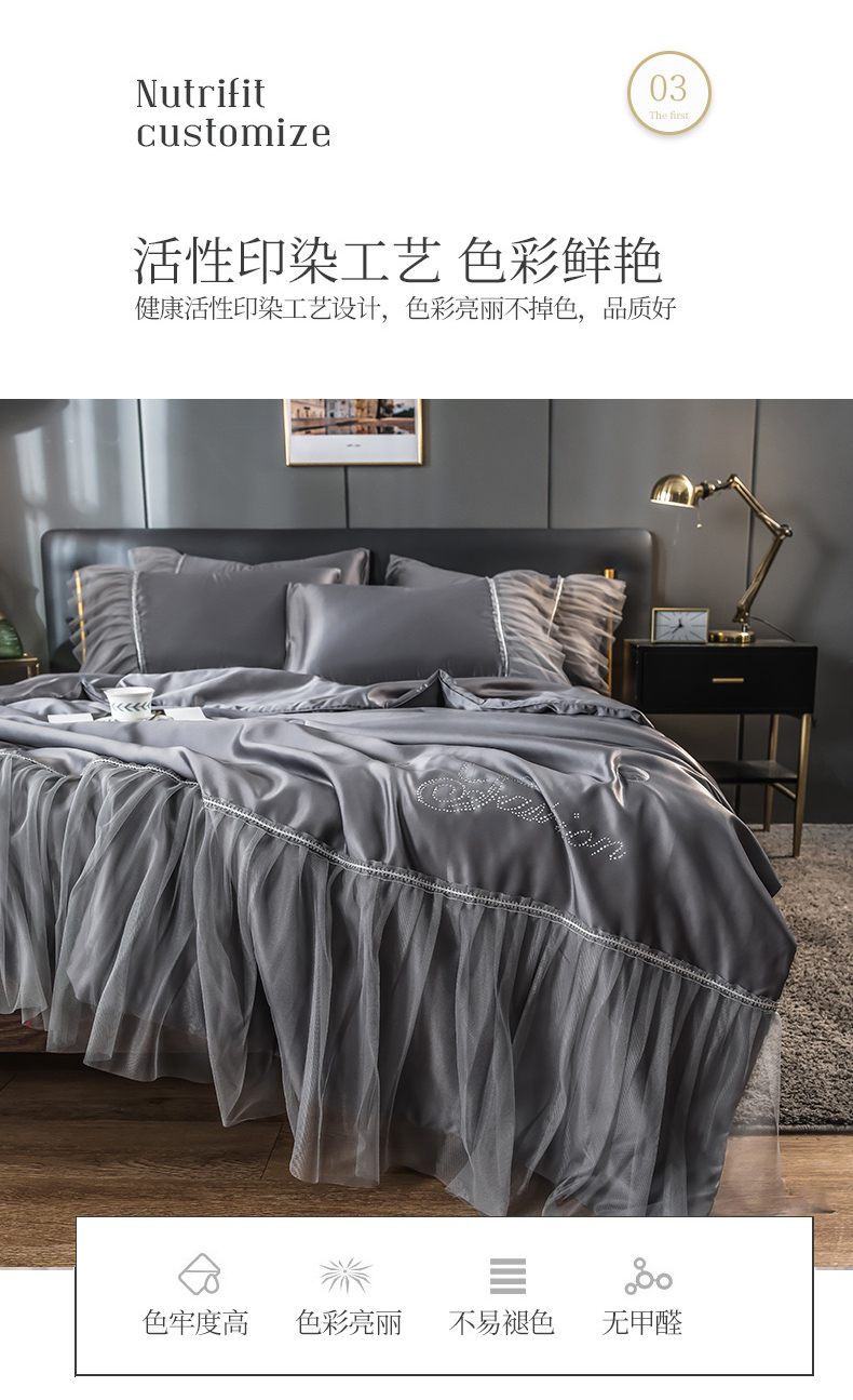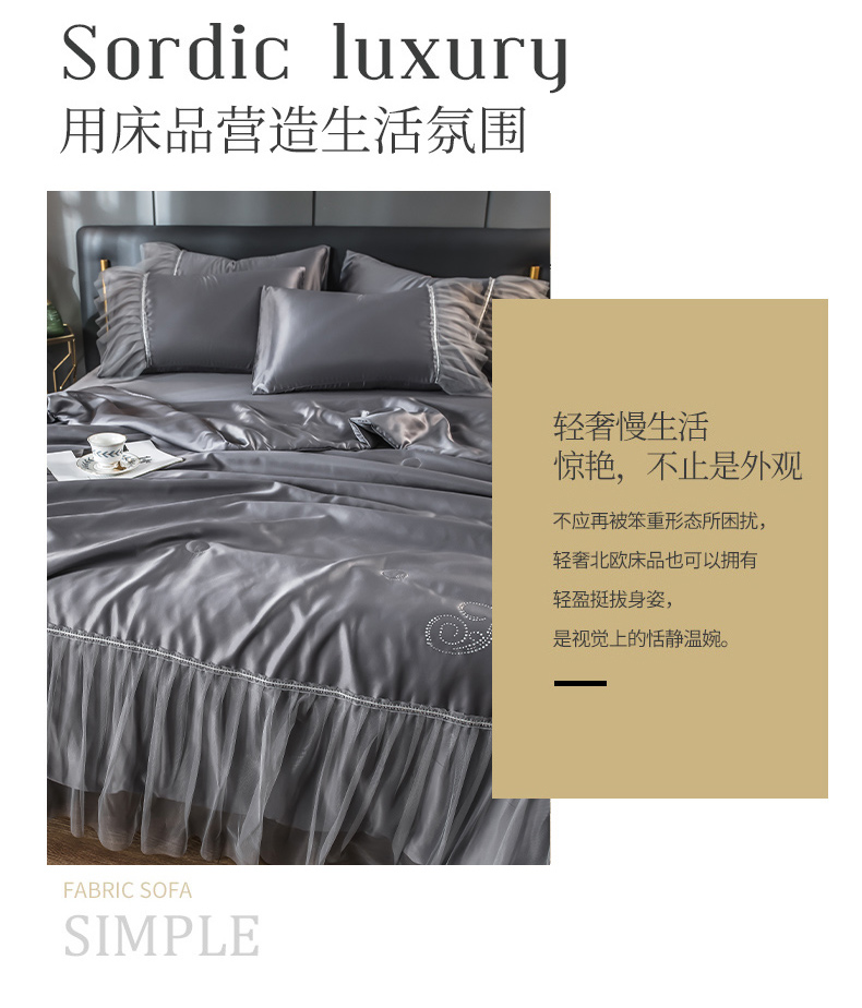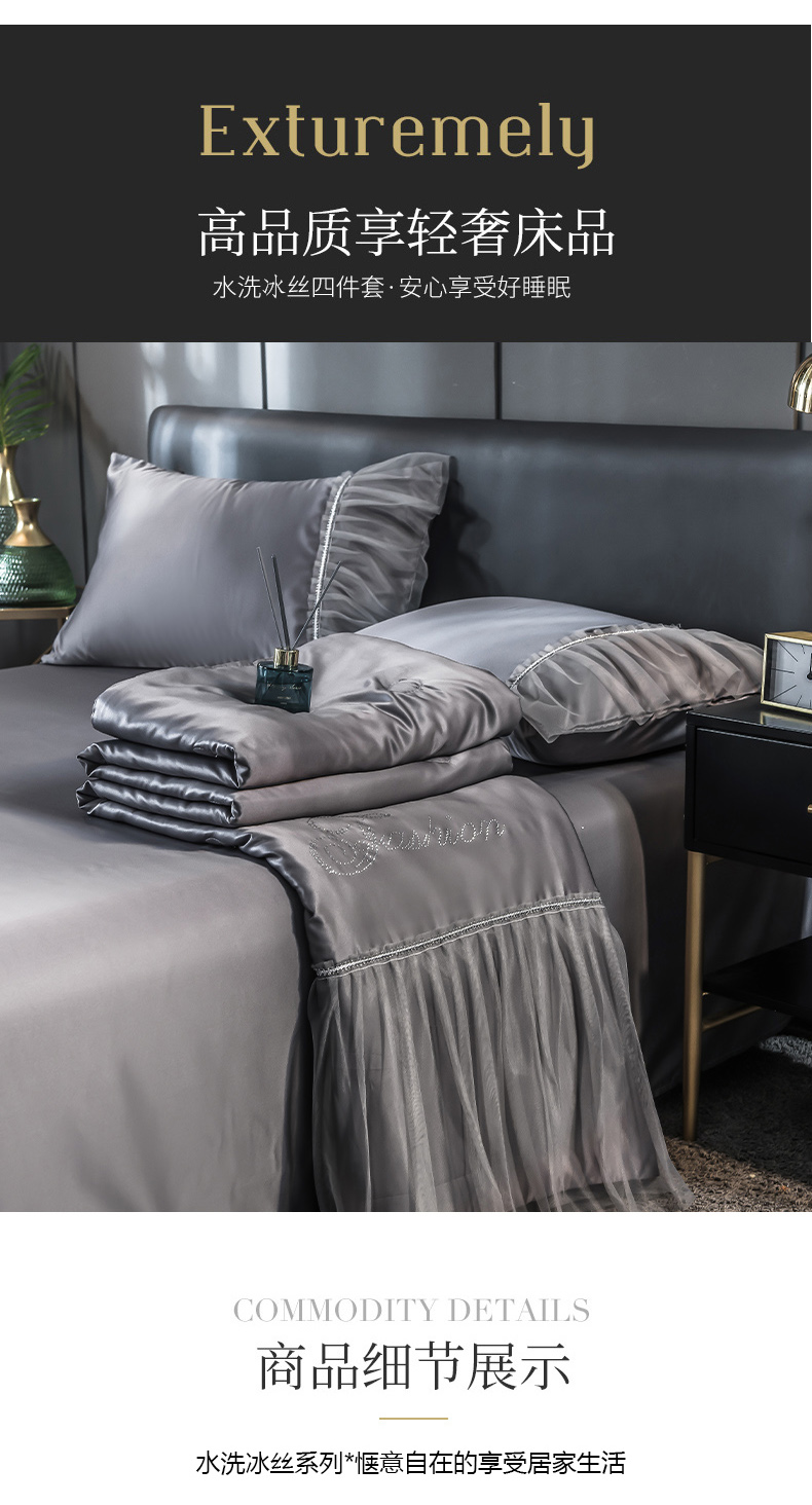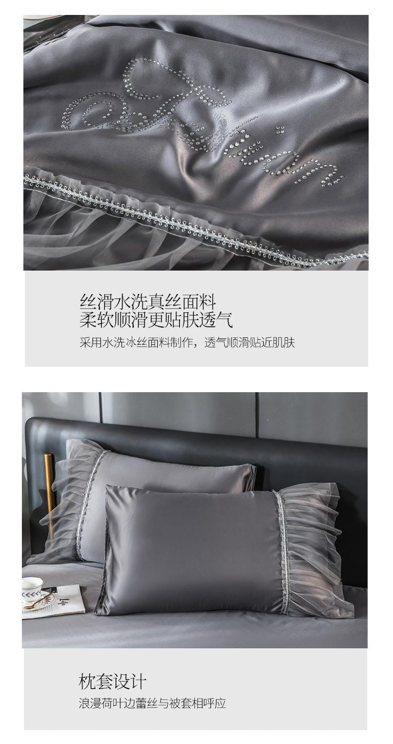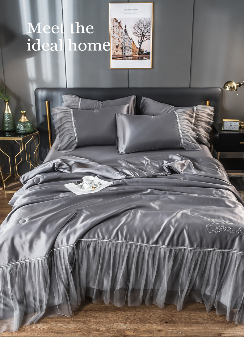 当前位置: 91家纺网 > 商品网购 > 床品套件 > 四件套 > 夏被四件套 > 丽莱美家纺 2026新款水洗冰丝蕾丝夏被 夏被三件套 夏被四件套 灰色