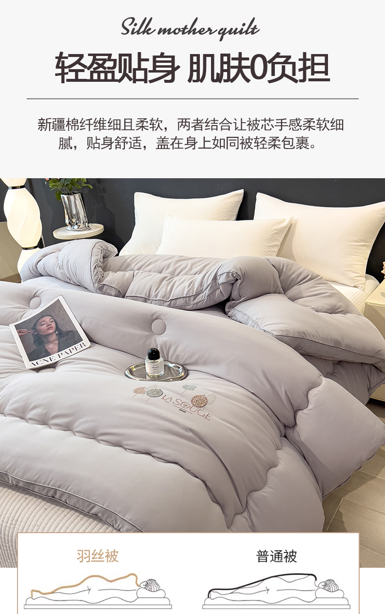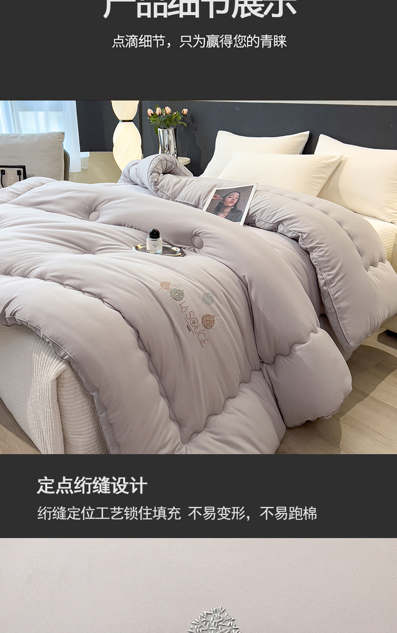 • 91家纺网 家纺一手货源 找家纺 丽莱美家纺 2026新款牛奶棉新疆羽丝绵被被子被芯-云柔系列 云柔-灰