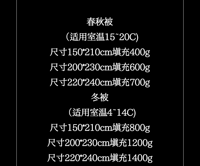 220*240cm春秋被 填充1100g | ¥440.00 |