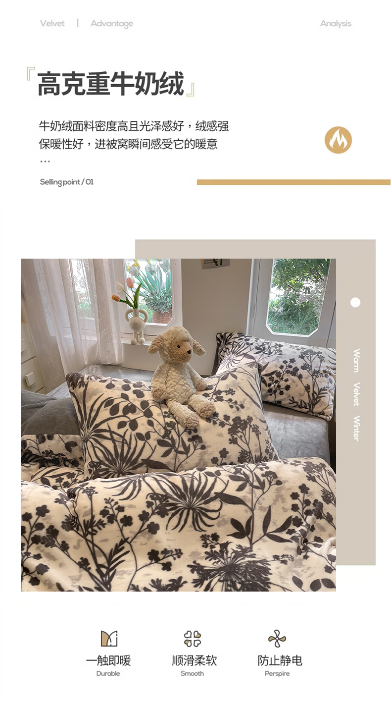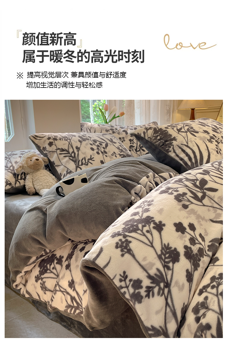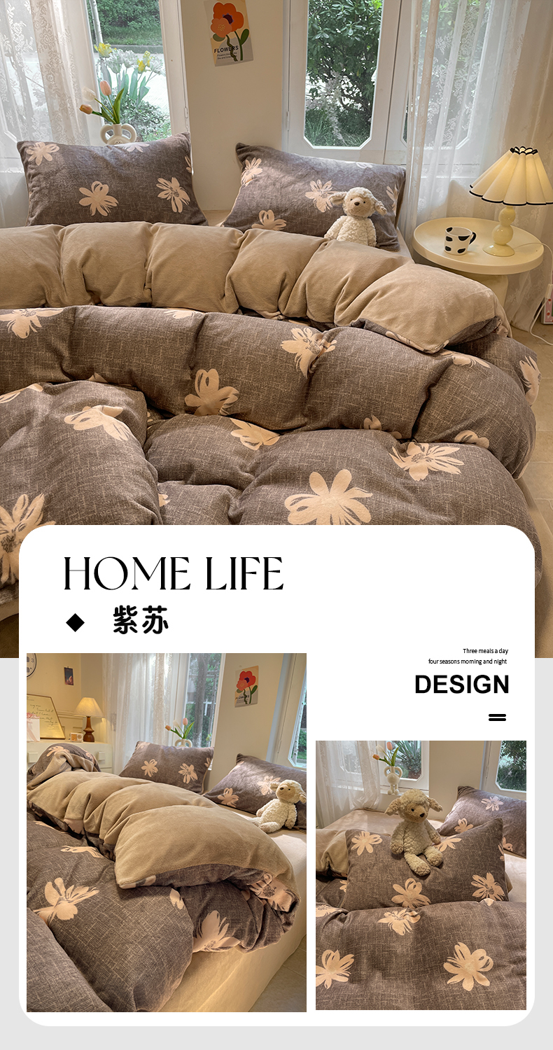花漾家居 2024新款宽边牛奶绒四件套 秋日恋曲,秋日恋曲
