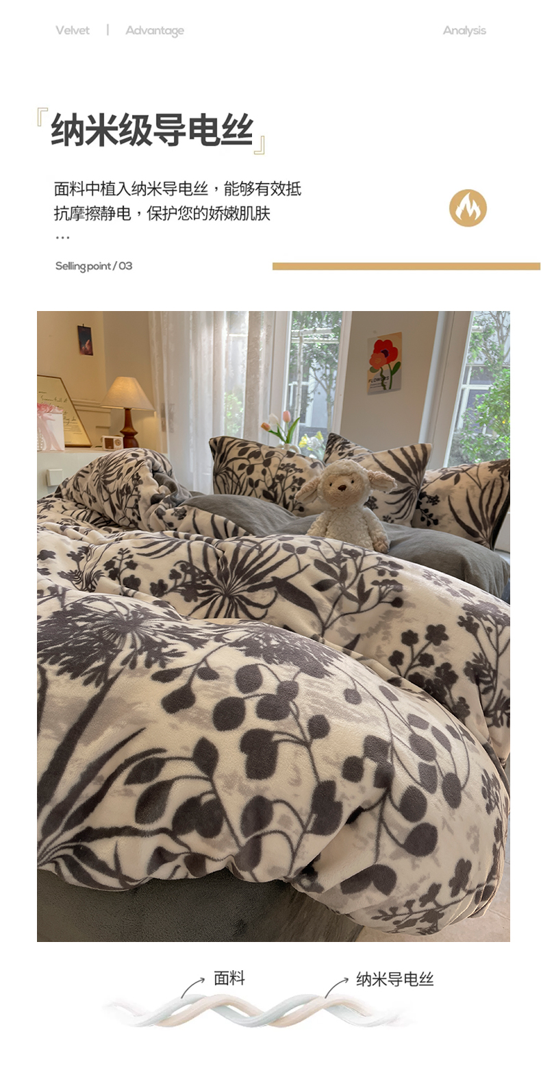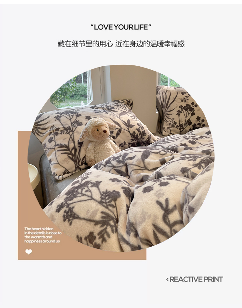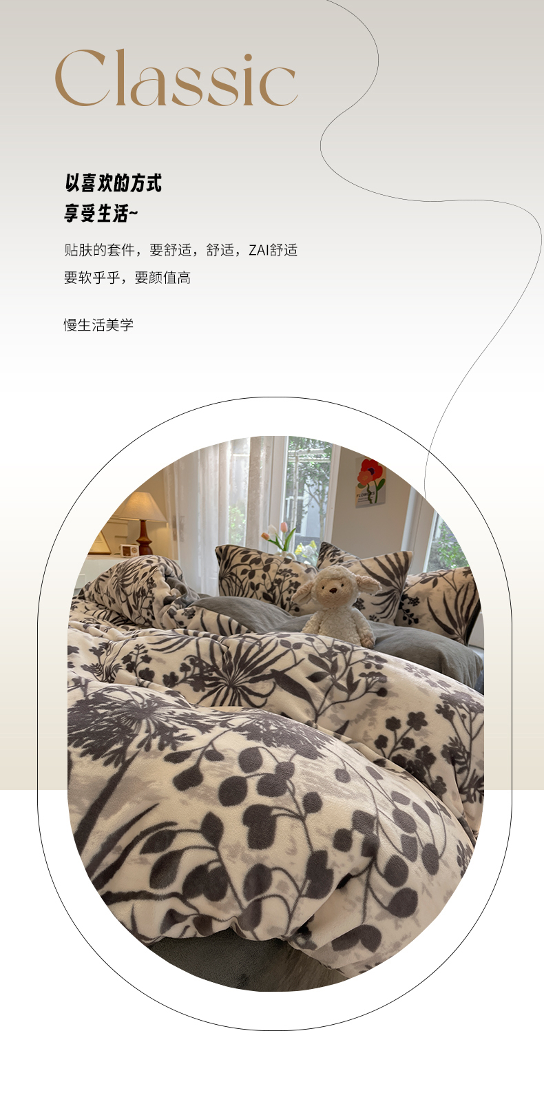 花漾家居 2024新款宽边牛奶绒四件套 秋日恋曲,秋日恋曲