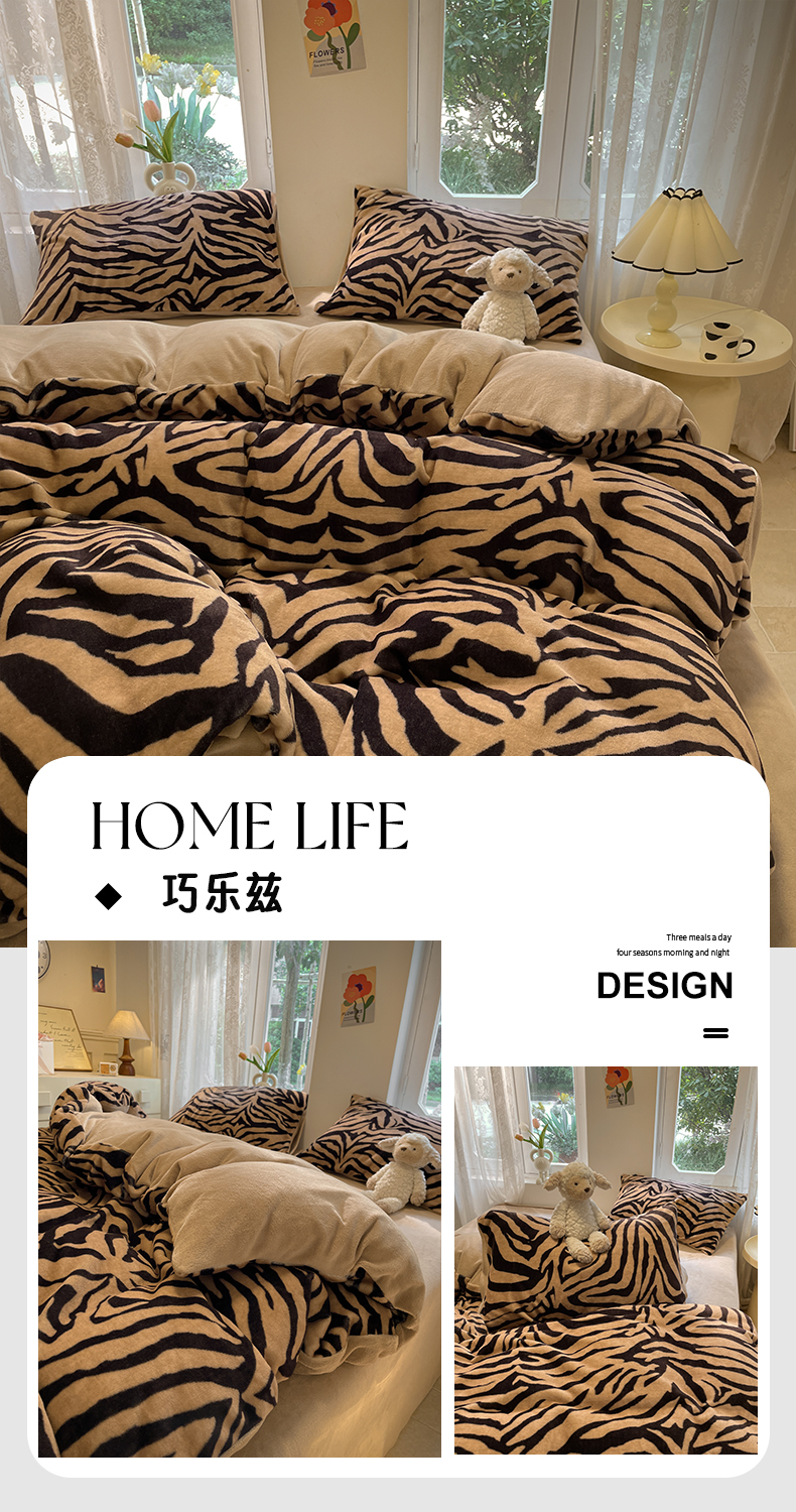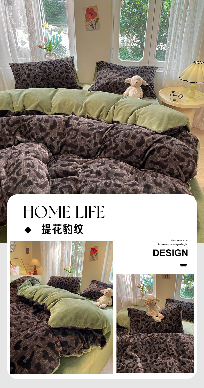 花漾 2024新款欧式轻奢压线牛奶绒四件套 豹纹,豹纹
