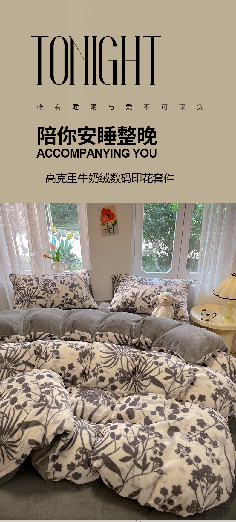 花漾家居 2024新款宽边牛奶绒四件套 月影,月影