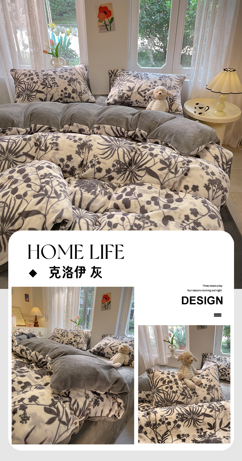 (总)花漾家居 2025爆款仿色织大提花牛奶绒被套床单学生宿舍三件套四件套