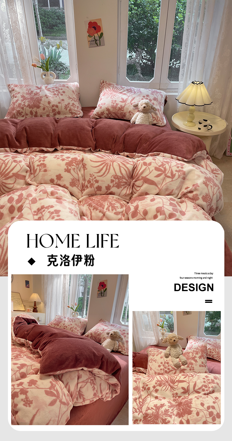 (总)花漾 2024秋冬新款雕花牛奶绒珍珠工艺款四件套,爱情海-咖,几何绿,丘比特-粉,小香咖,幸运花-咖