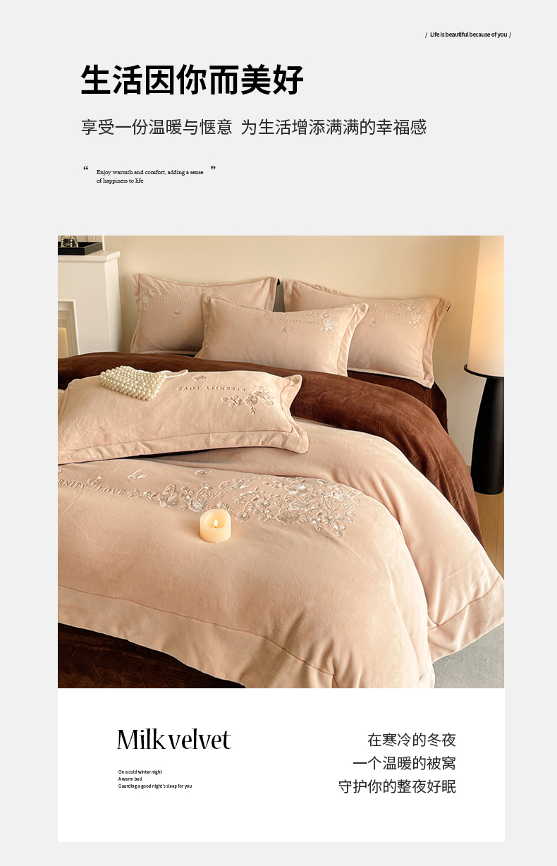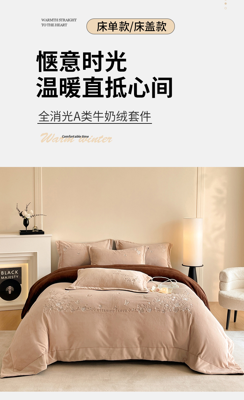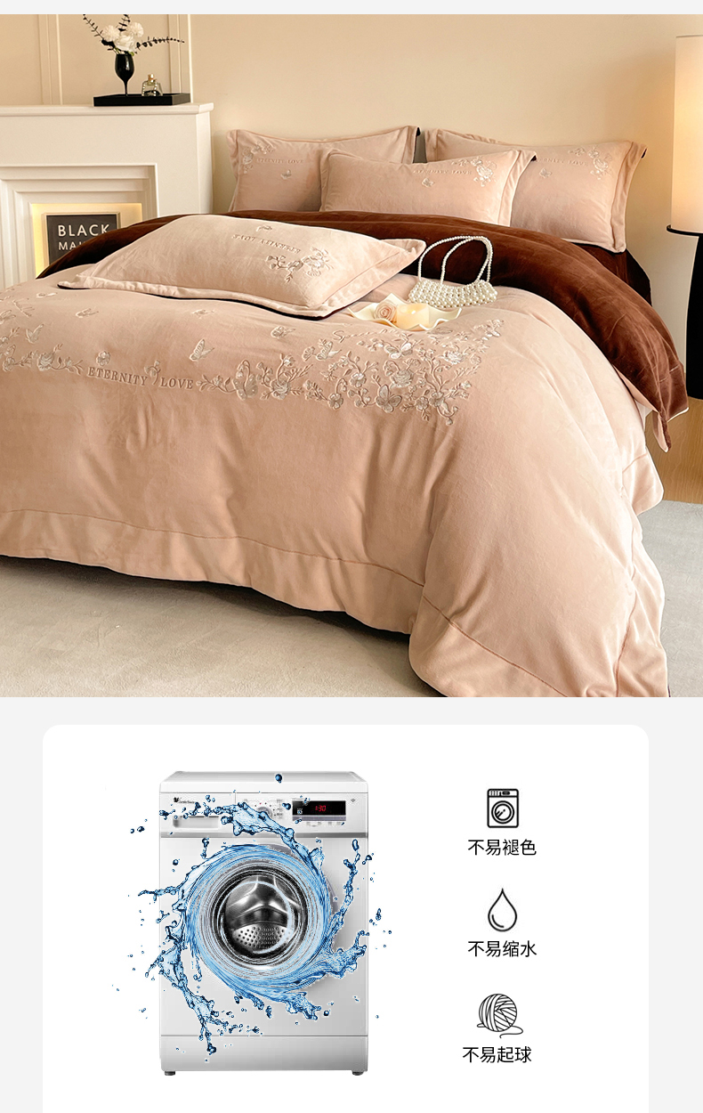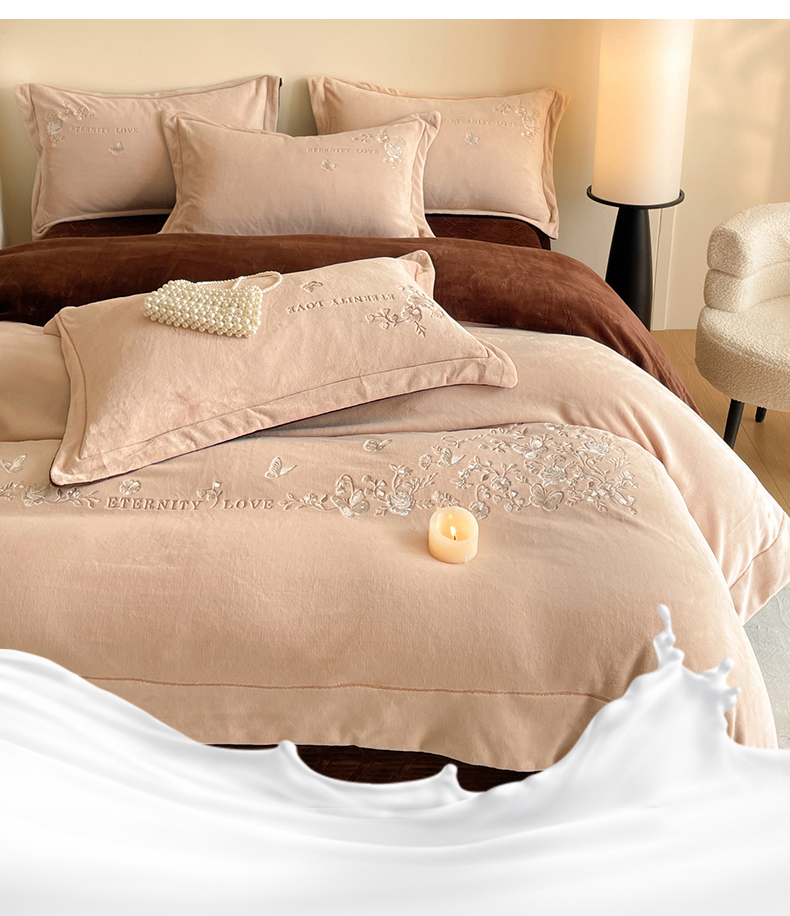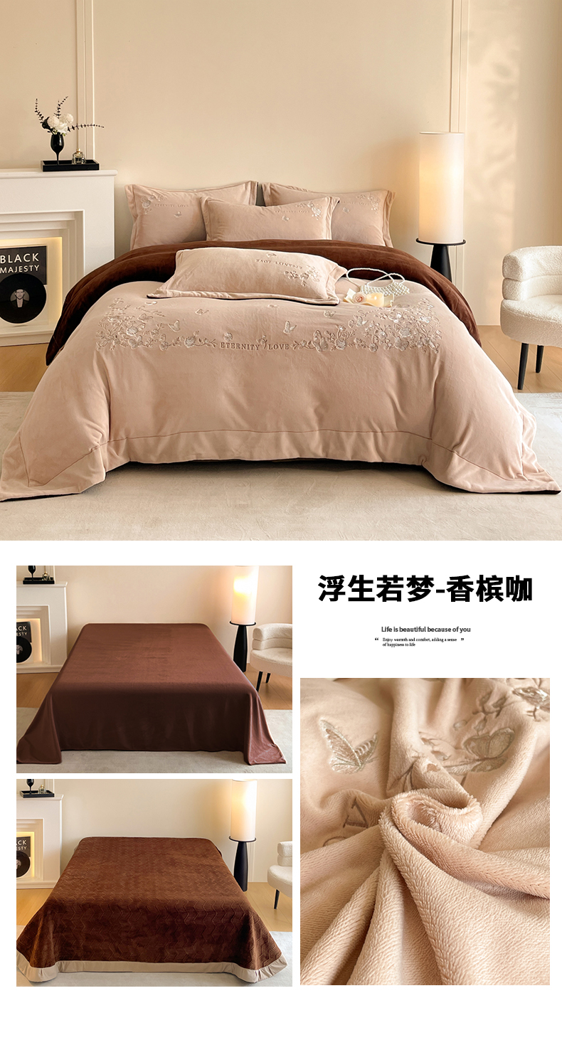 当前位置: 91家纺网 > 商品网购 > 床品套件 > 四件套 > 牛奶绒四件套 > 新方向 2025新款全消光A类刺绣牛奶绒四件套-浮生若梦 浮生若梦-香槟咖