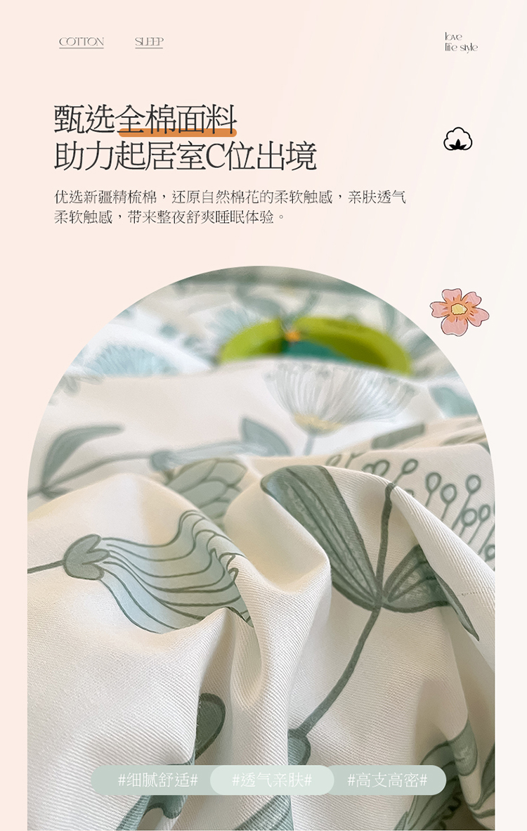 商品名称:澜妃 2025春夏新款12868全棉纯棉印花单被套 绿风玲