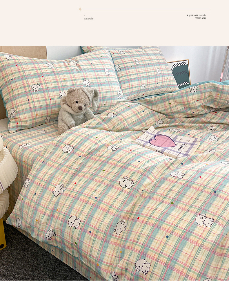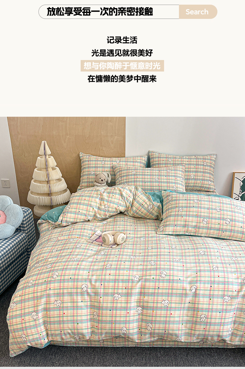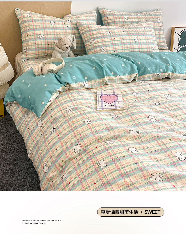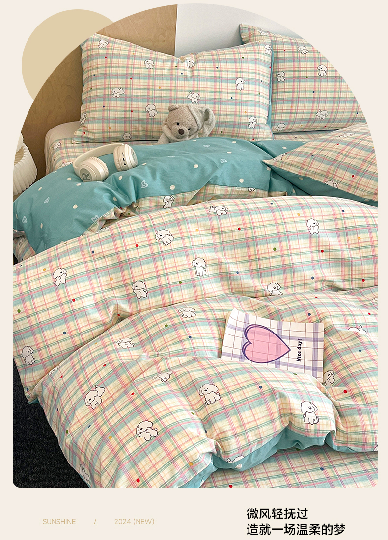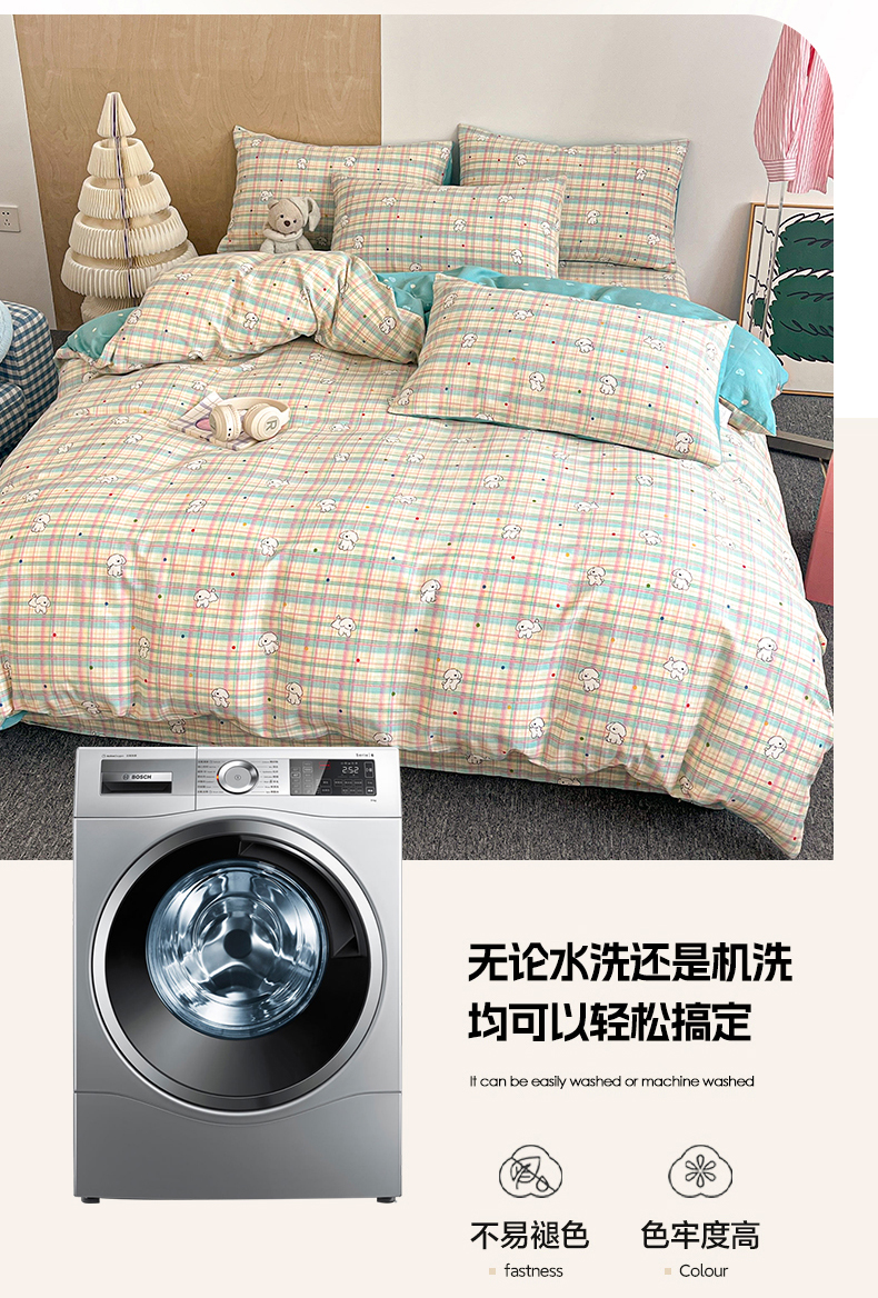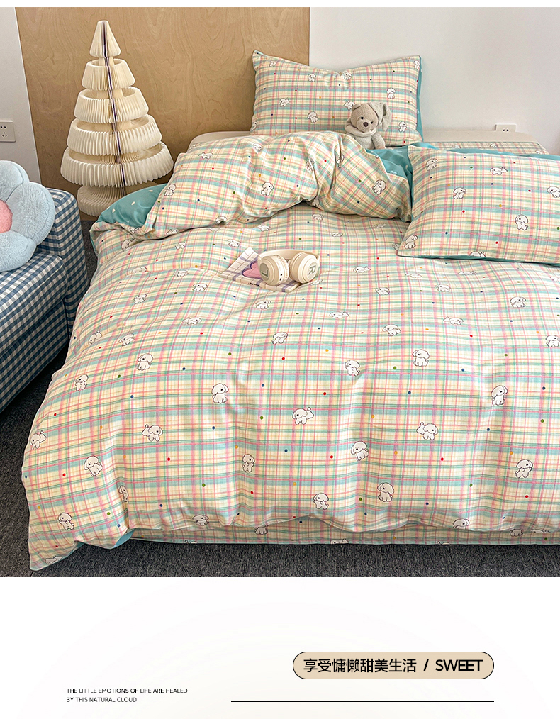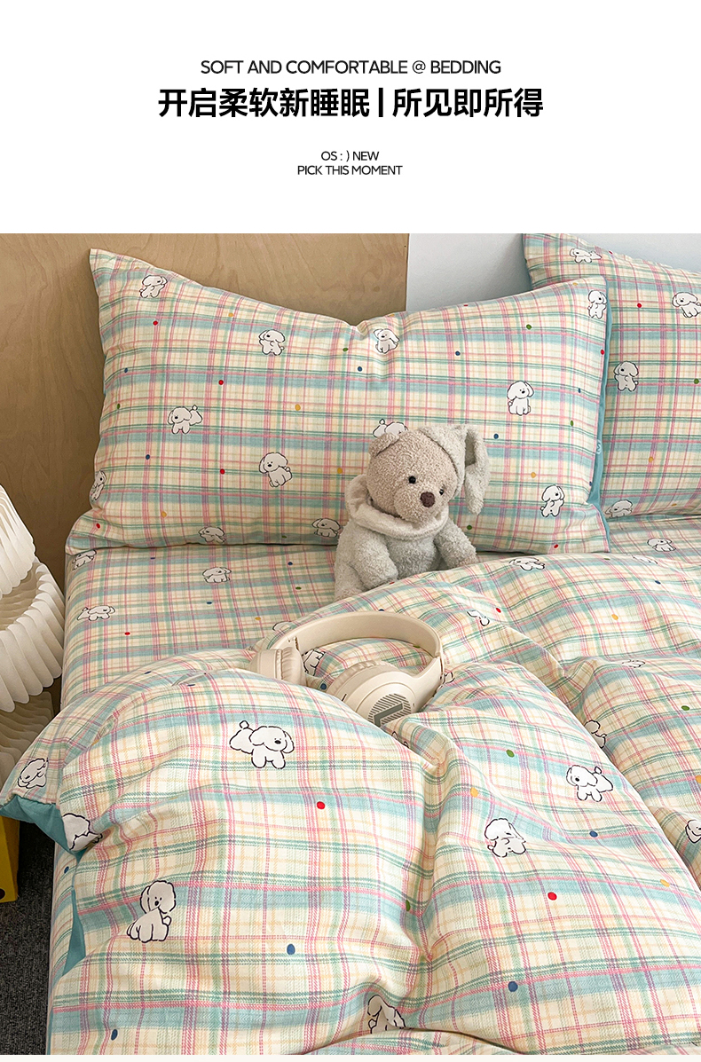 商品名称:澜妃 2025春夏新款12868全棉纯棉印花单被套 彩虹格小狗