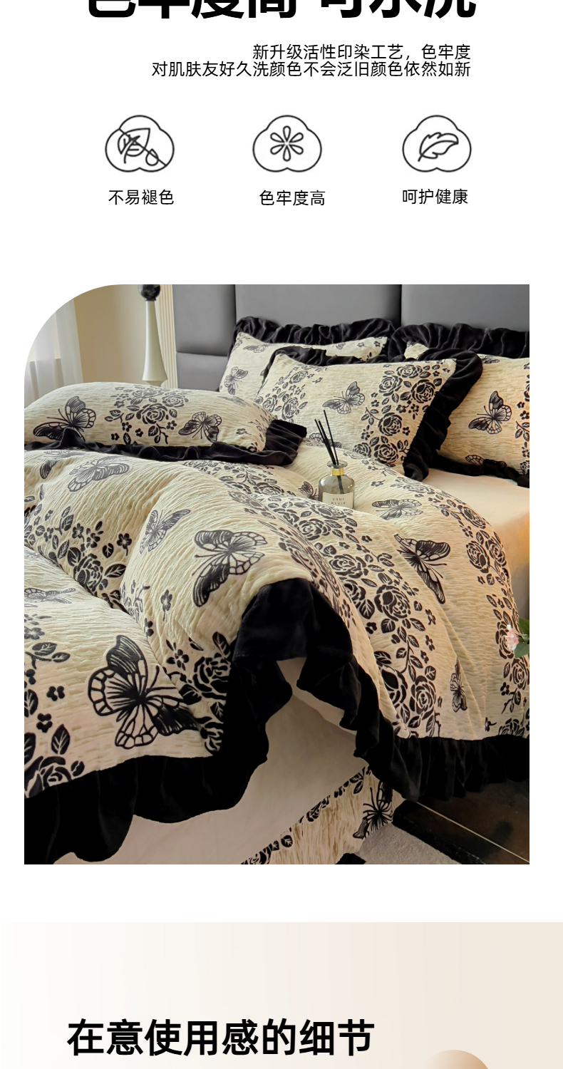 商品名称:鸿织源家纺 2025新款A类法式高克重烂花雕花牛奶绒四件套 陌上花开-蔷薇