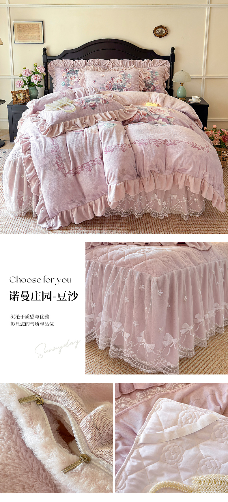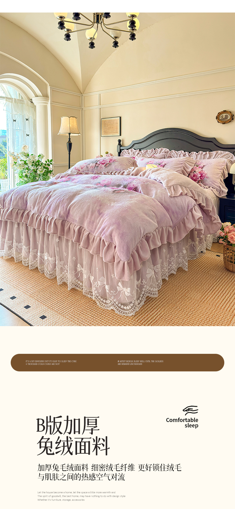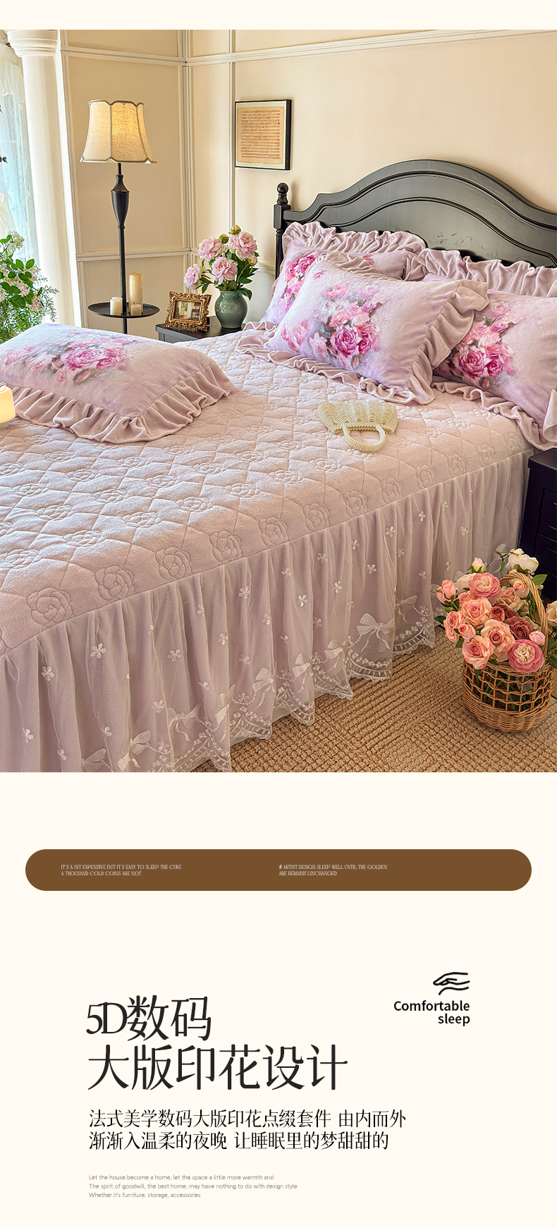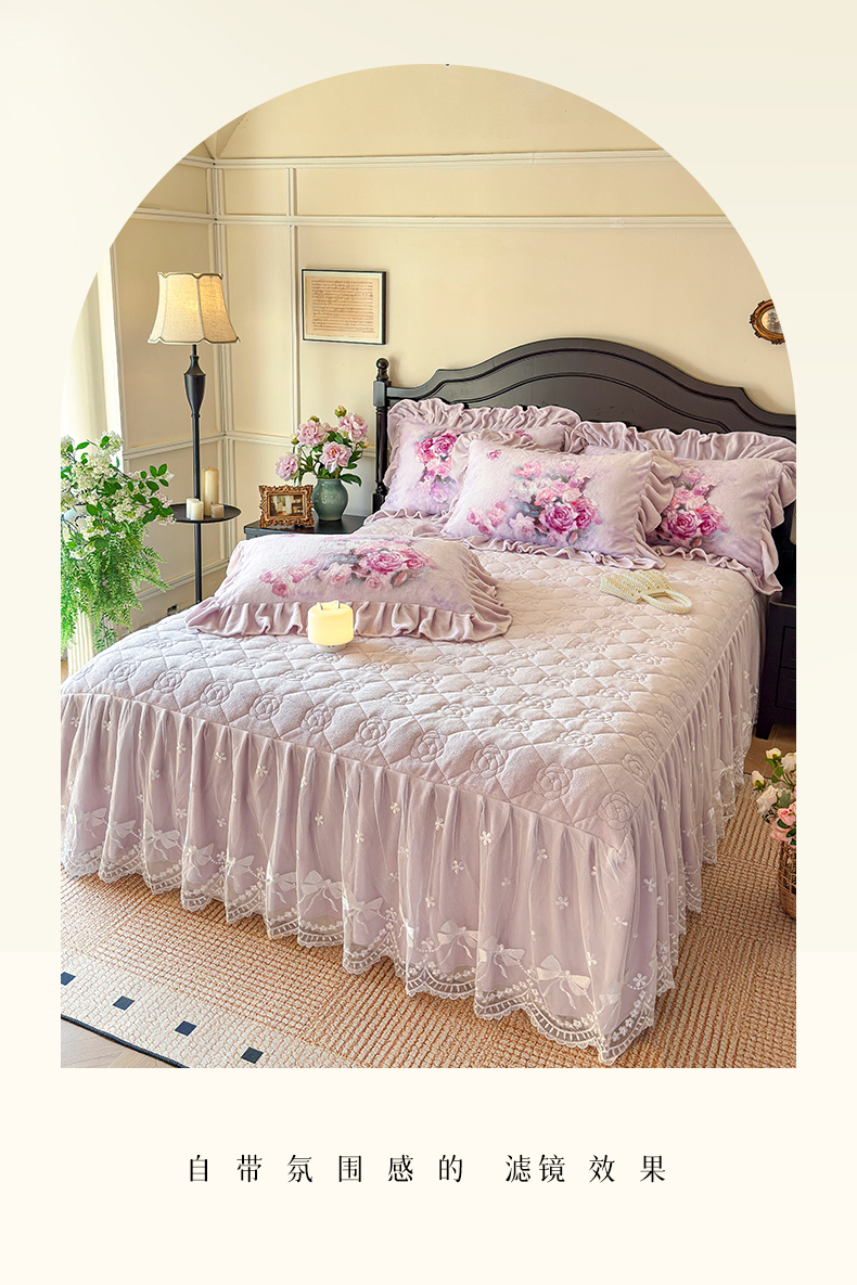 (总)宜凡家纺 2025新款兔绒提花牛奶绒夹棉床裙四件套,爱心 少女粉,爱心 粉紫,爱心 驼色,蝶舞 大红,蝶舞 米色,蝶舞 浅紫,蝶舞 玉色,简爱 苍青,简爱 豆沙紫,简爱 玉色,樱桃 苍青,樱桃 豆沙紫,樱桃 奶油白