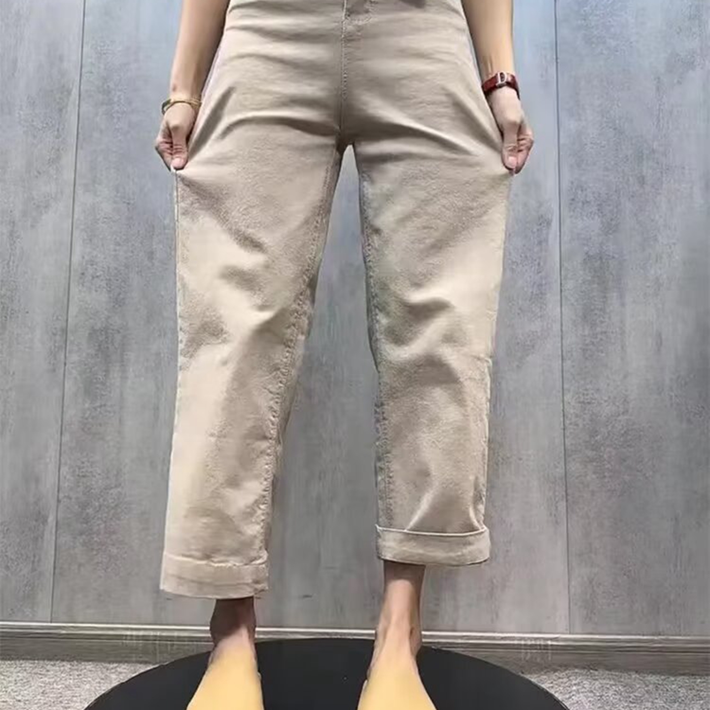 洛兰沙家居馆【只代发】【只代发】 2025只代发欧货弹力牛仔裤女秋季2025新款高腰直筒宽松显瘦阔腿裤九分裤子32 奶咖色
