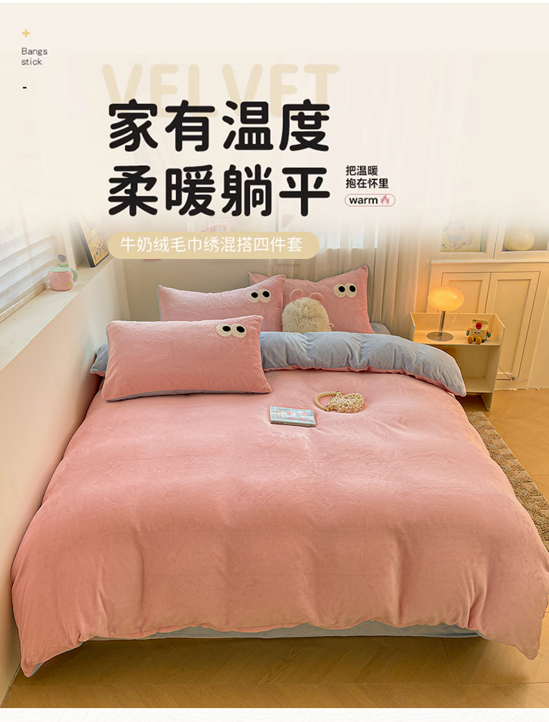 (总)雨洋家纺 2025新款牛奶绒双面毛巾绣四件套-大眼萌系列