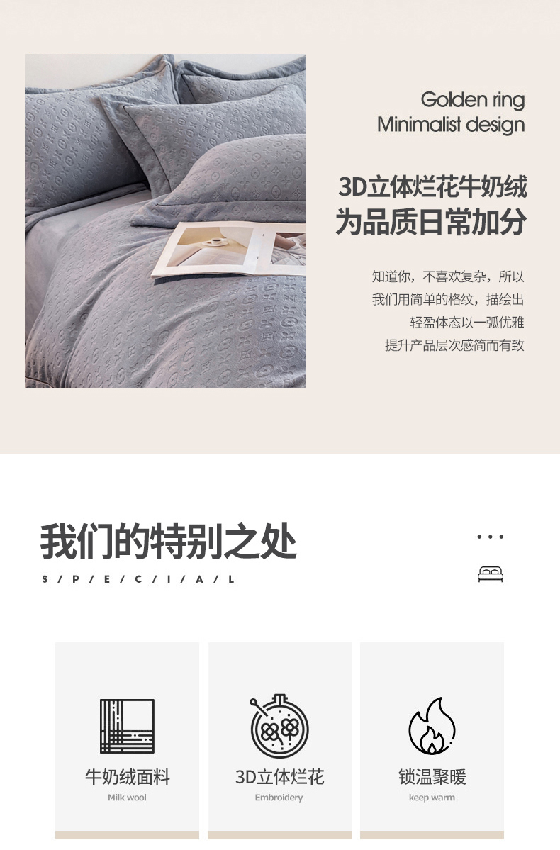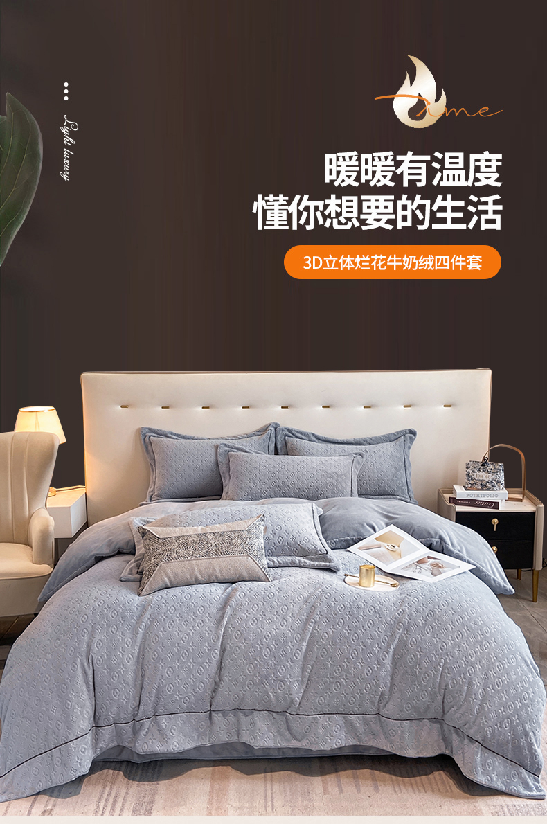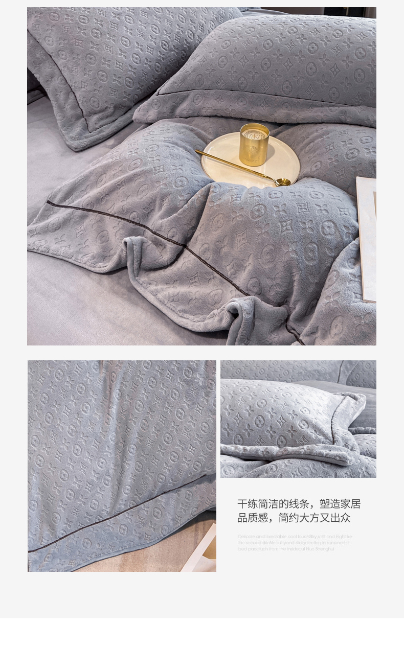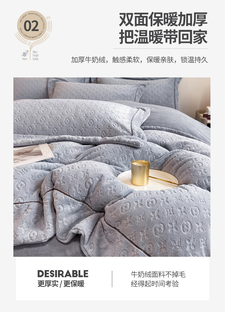 (总)经年 2025年新款210克全消光A类烂花牛奶绒四件套-路易系列