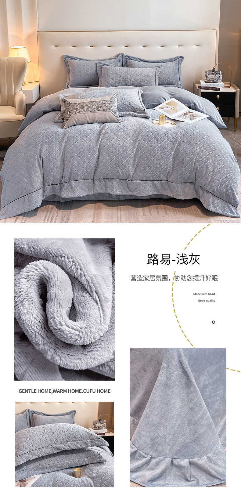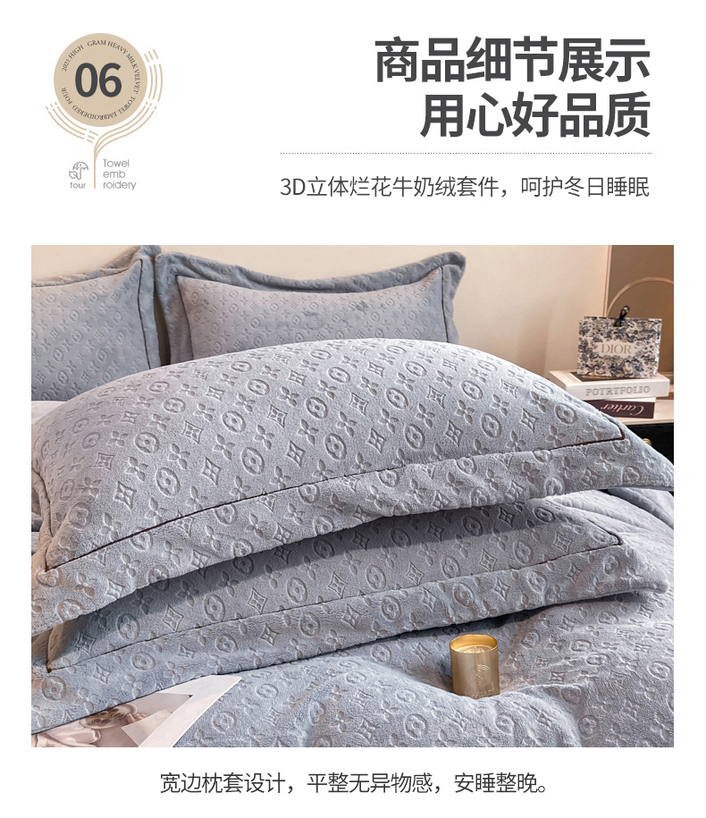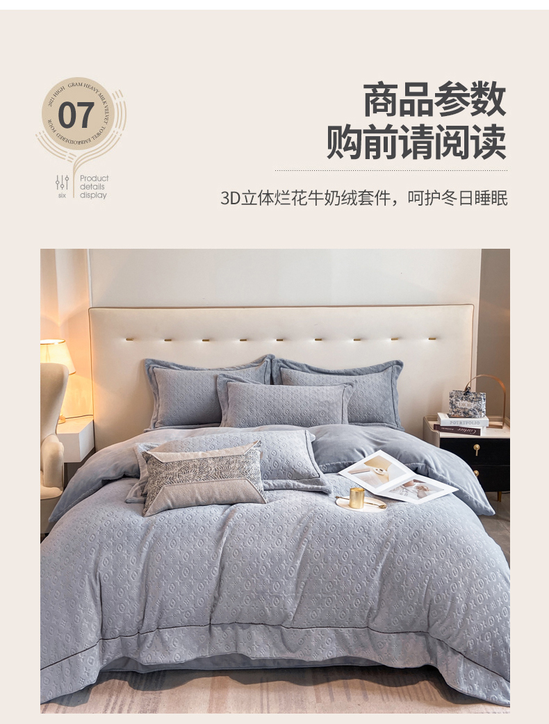 商品名称:(总)经年 2025年新款210克全消光A类烂花牛奶绒四件套-路易系列