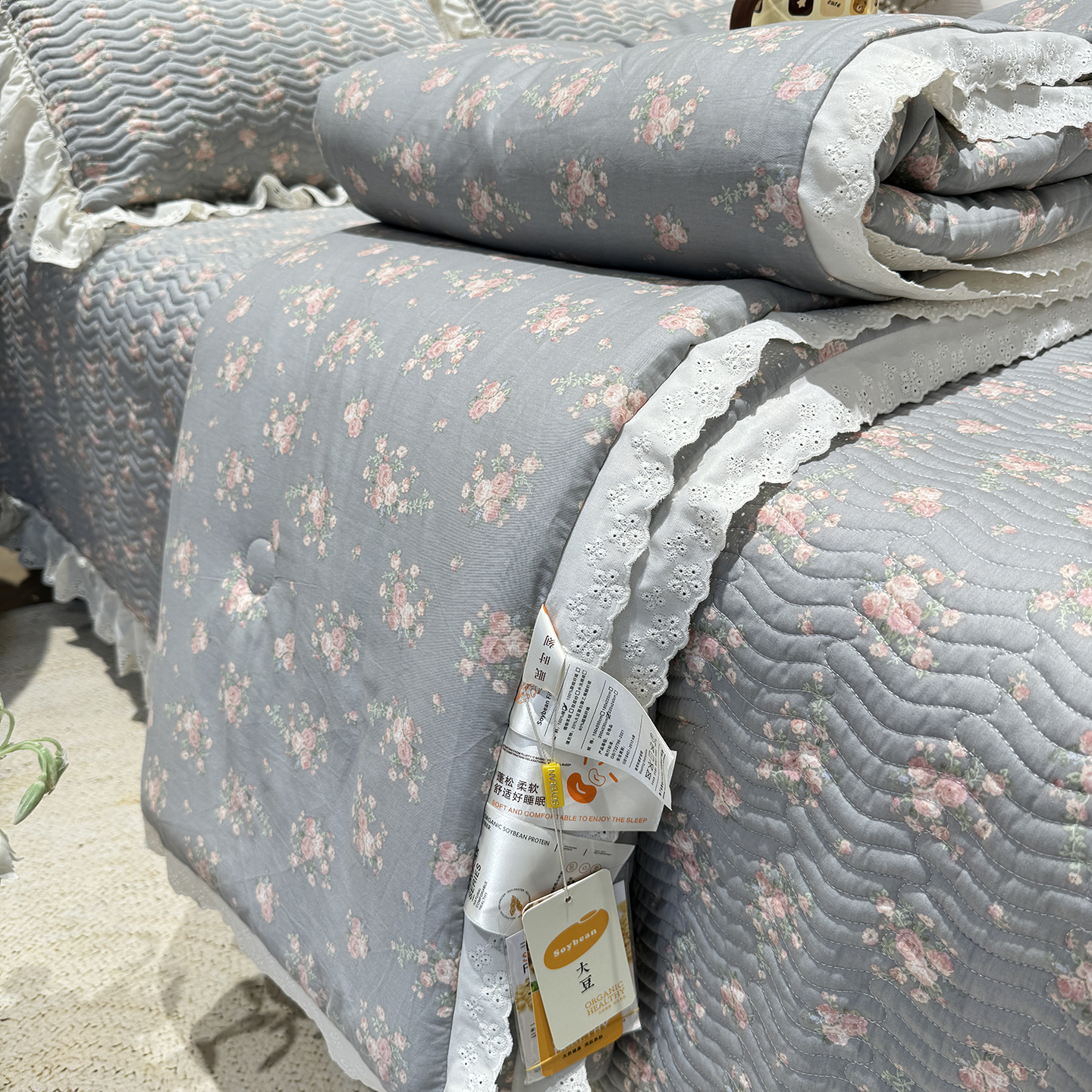 (总)奈萝家纺 2025春夏新款全棉纯棉蕾丝花边款夏被夏凉被空调被,呆呆熊,花语绿,花语紫,柠檬,蔷薇,西瓜兔,夏蓝,夏梦,夏之语,小花熊,樱花,组合图仅供展示