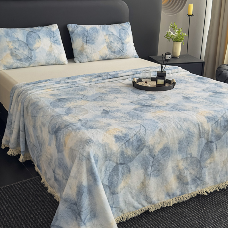 商品名称:家之硕家纺 2025新款高克重兔毛绒轻奢风床单系列 香叶蓝