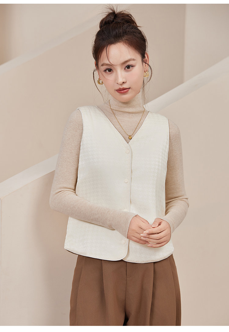 商品名称:蚕云阁蚕丝家居 2025新款蚕丝填充保暖马甲 千鸟格黑