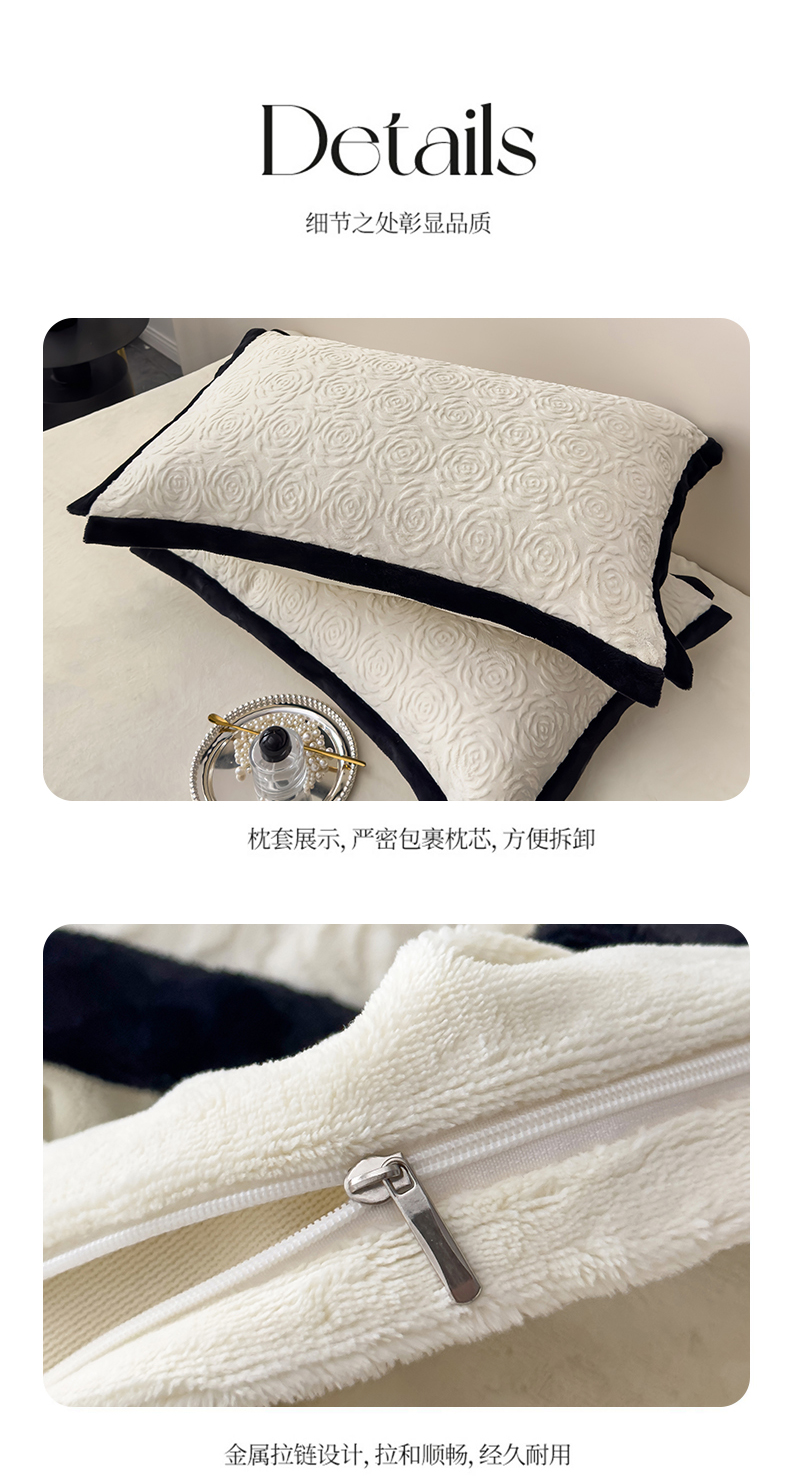 (总)好阁家纺 2025新款极简小香风雕花牛奶绒黑边四件套-风格一,千鸟格,山茶花,亚历山大,维多利亚