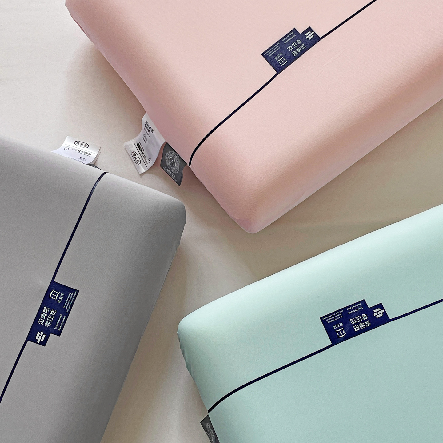 (总)明果枕芯 2026新款针织棉平面面包枕 记忆棉记忆枕枕芯 深睡眠慢回弹,蓝色,灰色,藕色,组合图