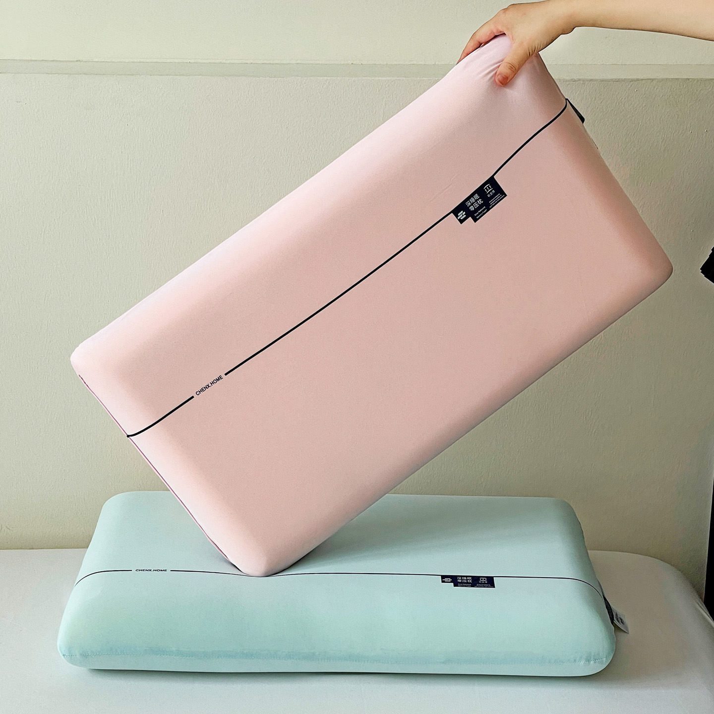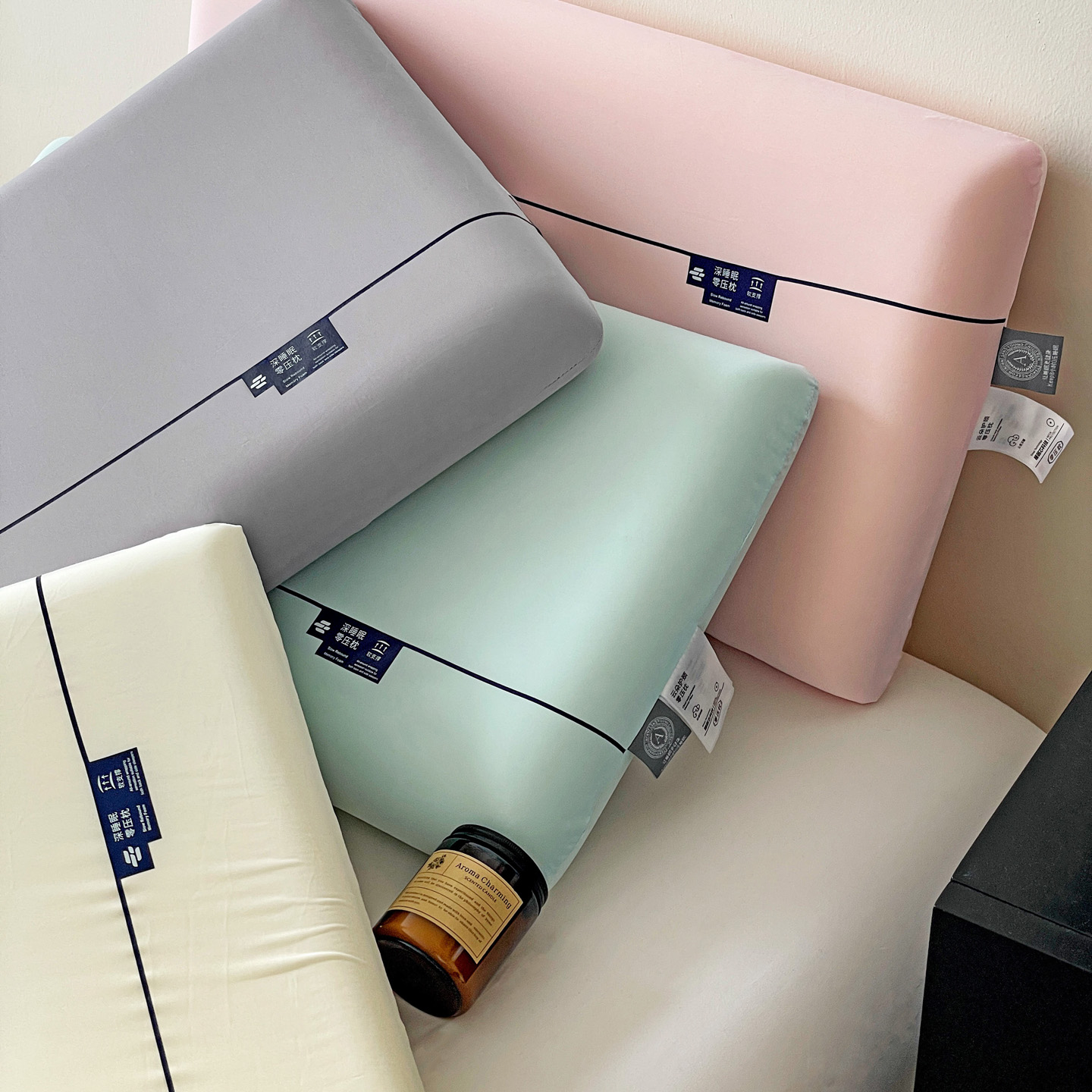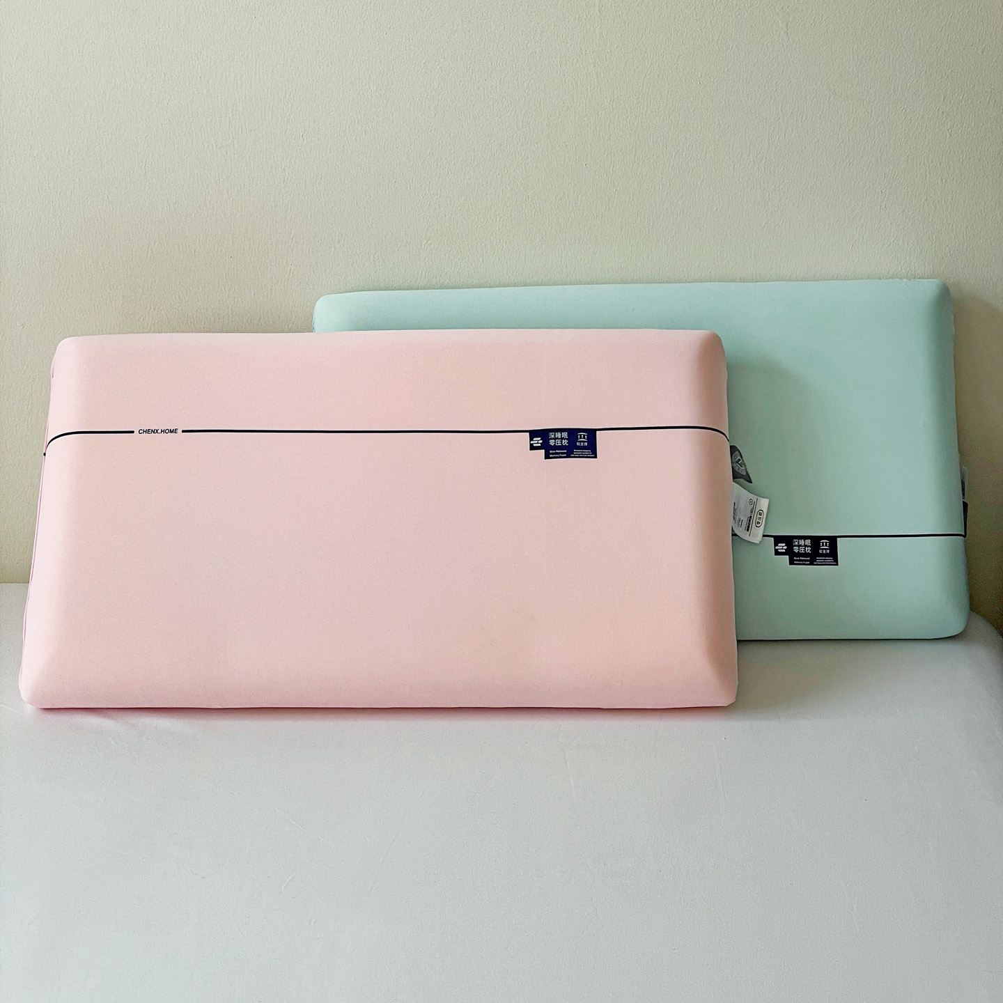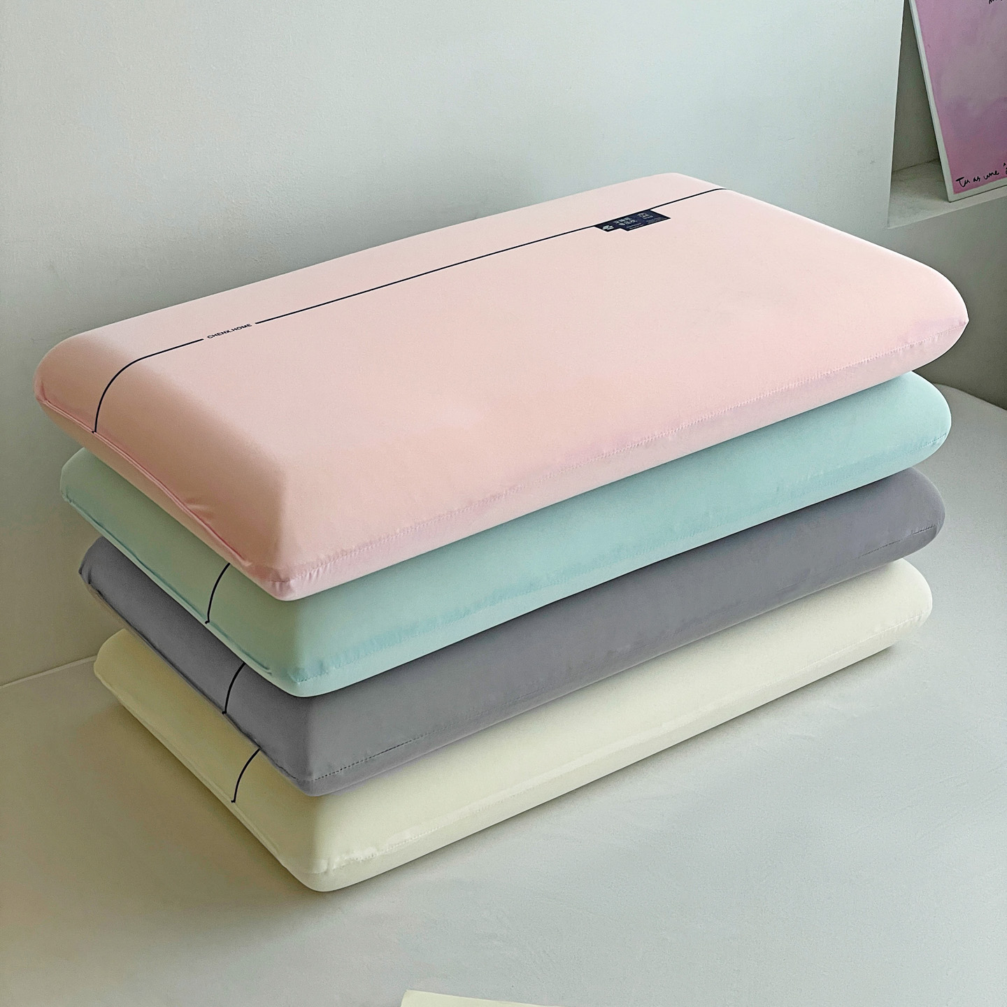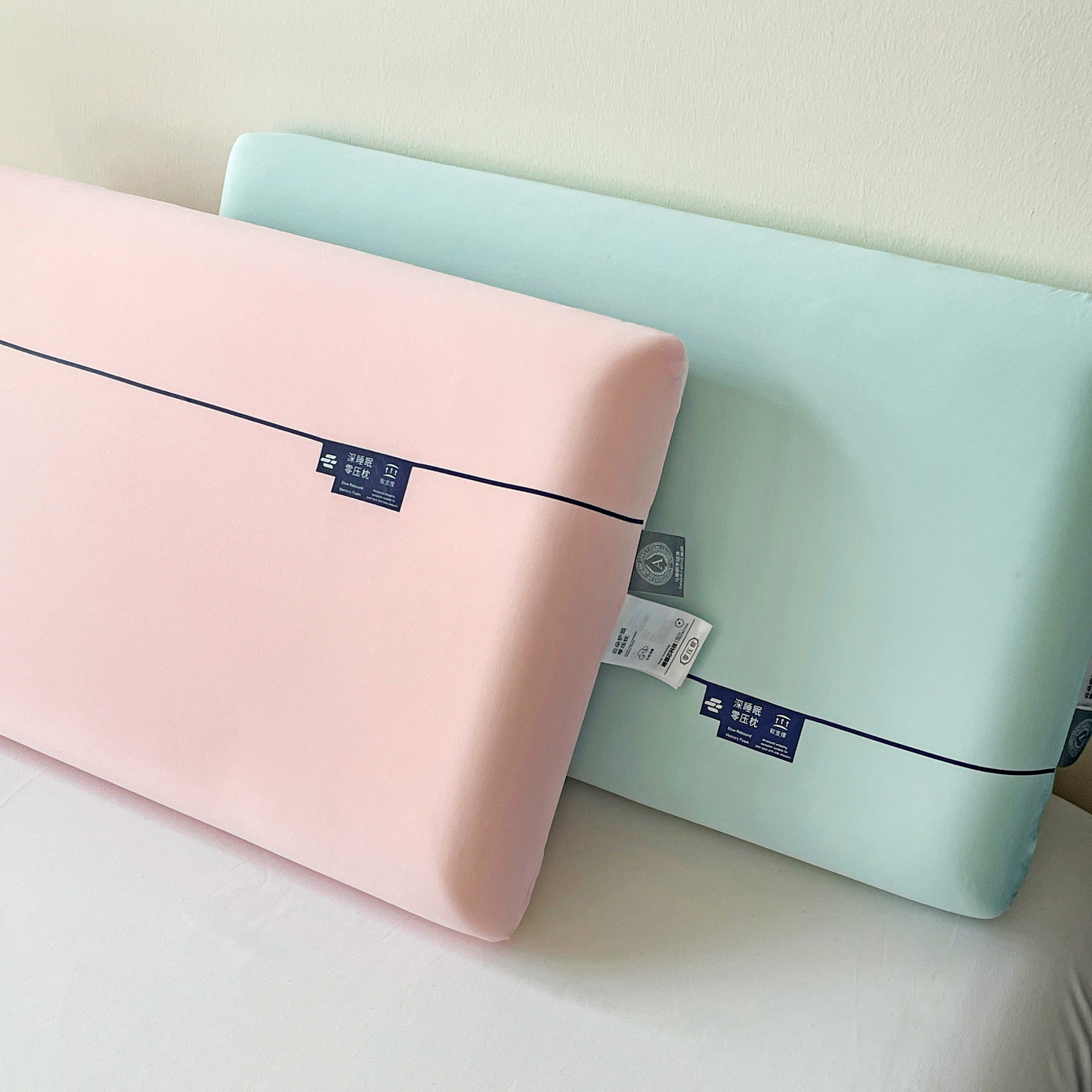 (总)明果枕芯 2026新款零压力平面面包枕 记忆棉记忆枕枕芯 深睡眠慢回弹,薄荷绿,粉,灰色,白色,组合图