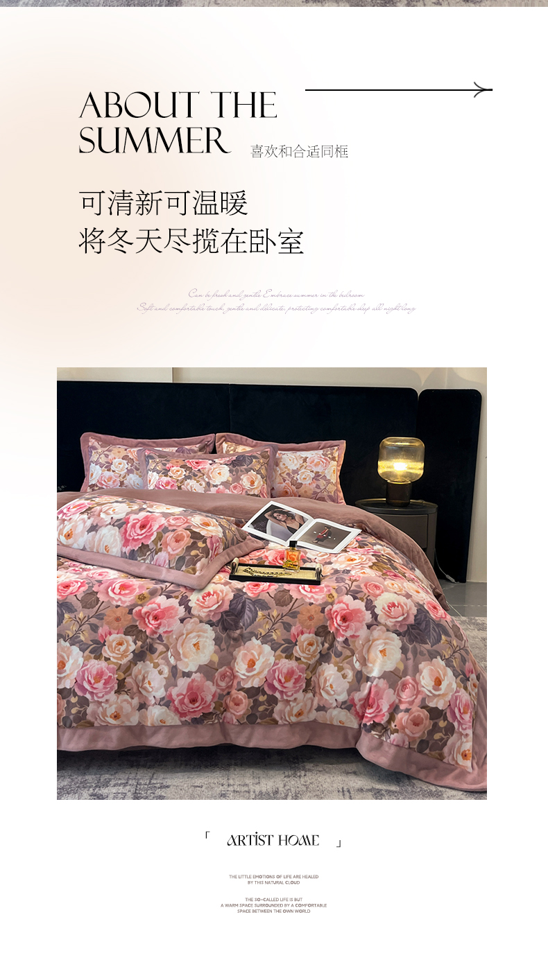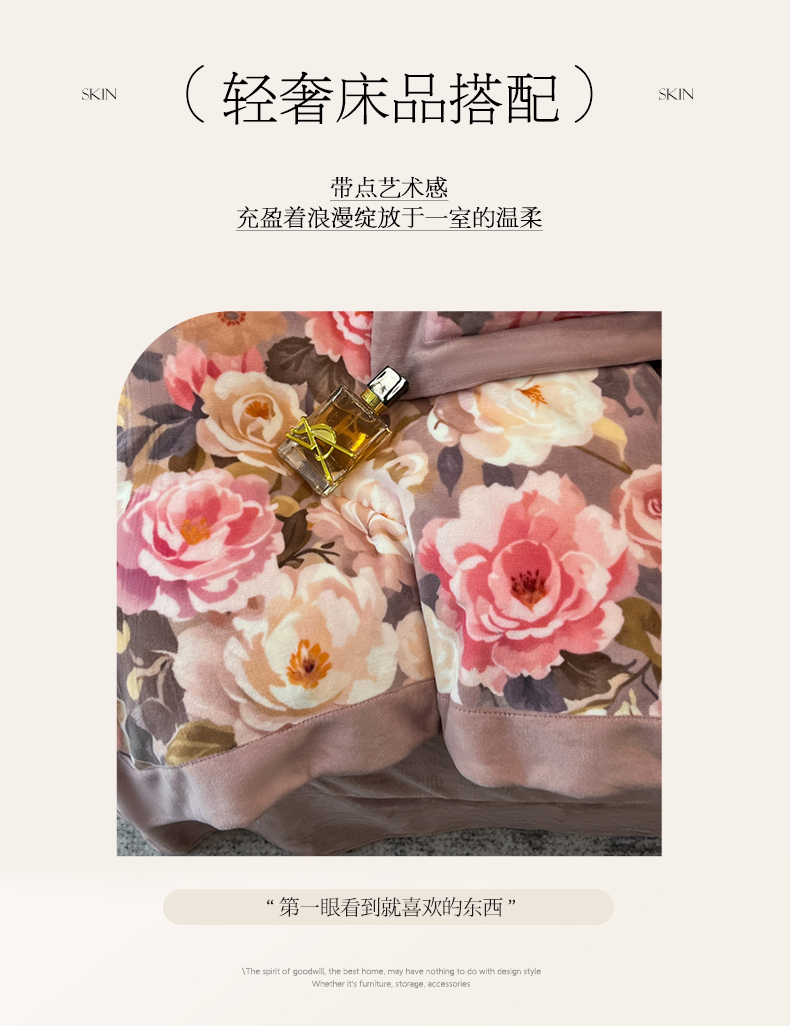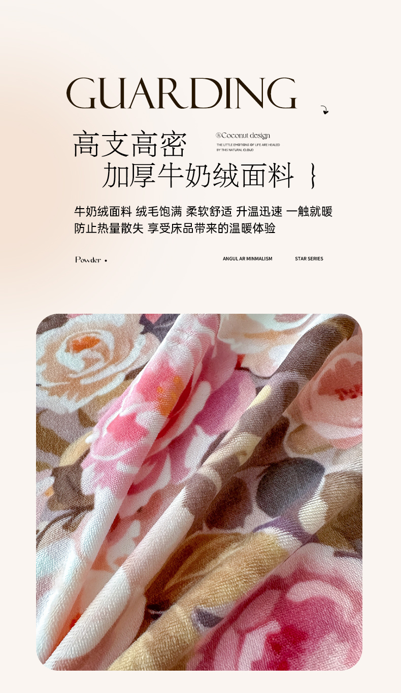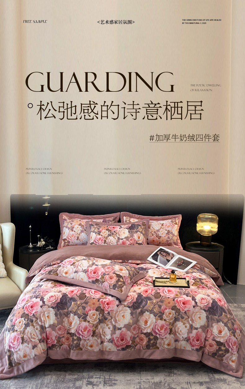 诺梵家纺 2025新款数码印花牛奶绒四件套(控价:159) 玫瑰花园-豆沙